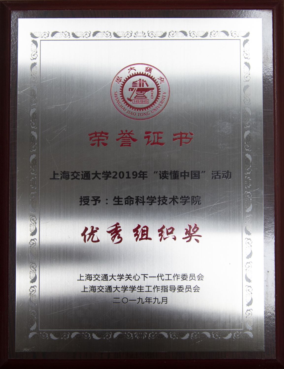 生命科学技术学院荣获上海交通大学“读懂中国”活动优秀组织奖