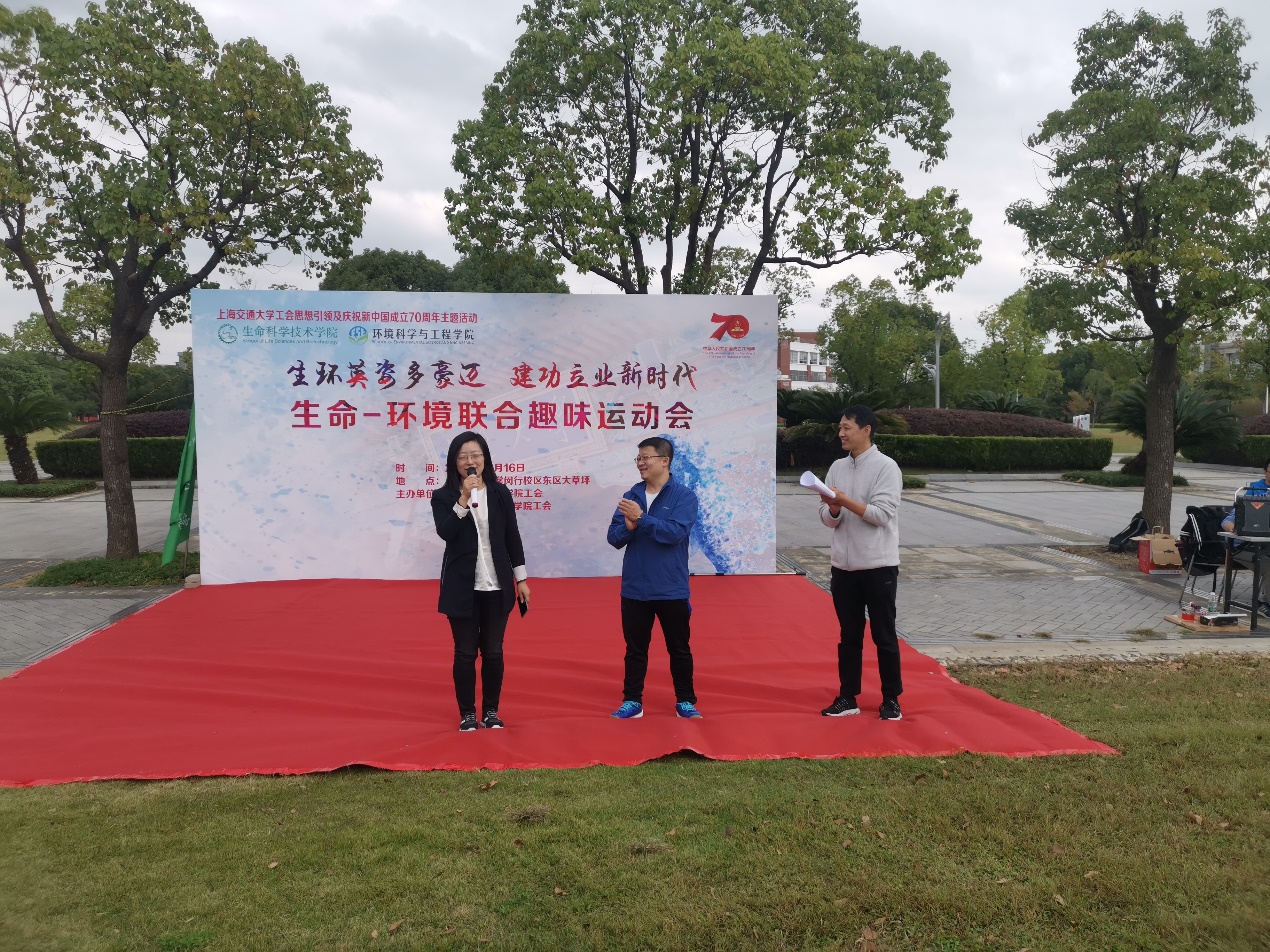 为响应国家“广泛开展全民健身运动活动”号召,树立“健康第一”的理念,通过体育运动将“以人为本”的人文精神,“求真创新”的科学精神,“追求卓越”的进取精神,“团结协作”的合作精神,“爱国荣校”的奉献精神相融合,倡导“每天锻炼一小时,健康工作五十年,幸福生活一辈子”。10月16日下午,由生命科学技术学院工会和环境科学与工程学院工会联合举办的趣味运动会在上海交通大学闵行校区东区大草坪圆满召开。校工会主席于朝阳,生命科学技术学院党委书记嵇绍岭、副书记郑敏,环境学院党委书记胡薇薇、工会主席何圣兵等领导,以及两院近百名教职工和志愿者参加了此次活动。