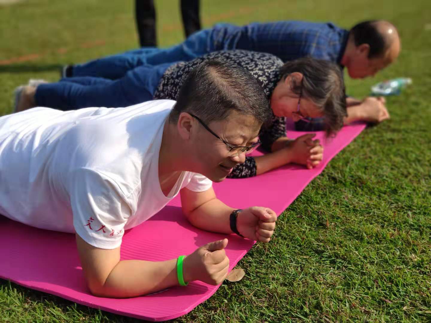 整个运动会场面最壮观和激烈的环节是在所有团队比赛结束之后,有近百位选手一起参加了个人平板支撑项目,最后经过激烈的角逐,环境学院武湘豫老师、生命科学技术学院郑敏老师和王复芹老师以总成绩6'46"94,6'44"15 , 5'52"19的好成绩分别获得个人平板支撑项目的前三名。