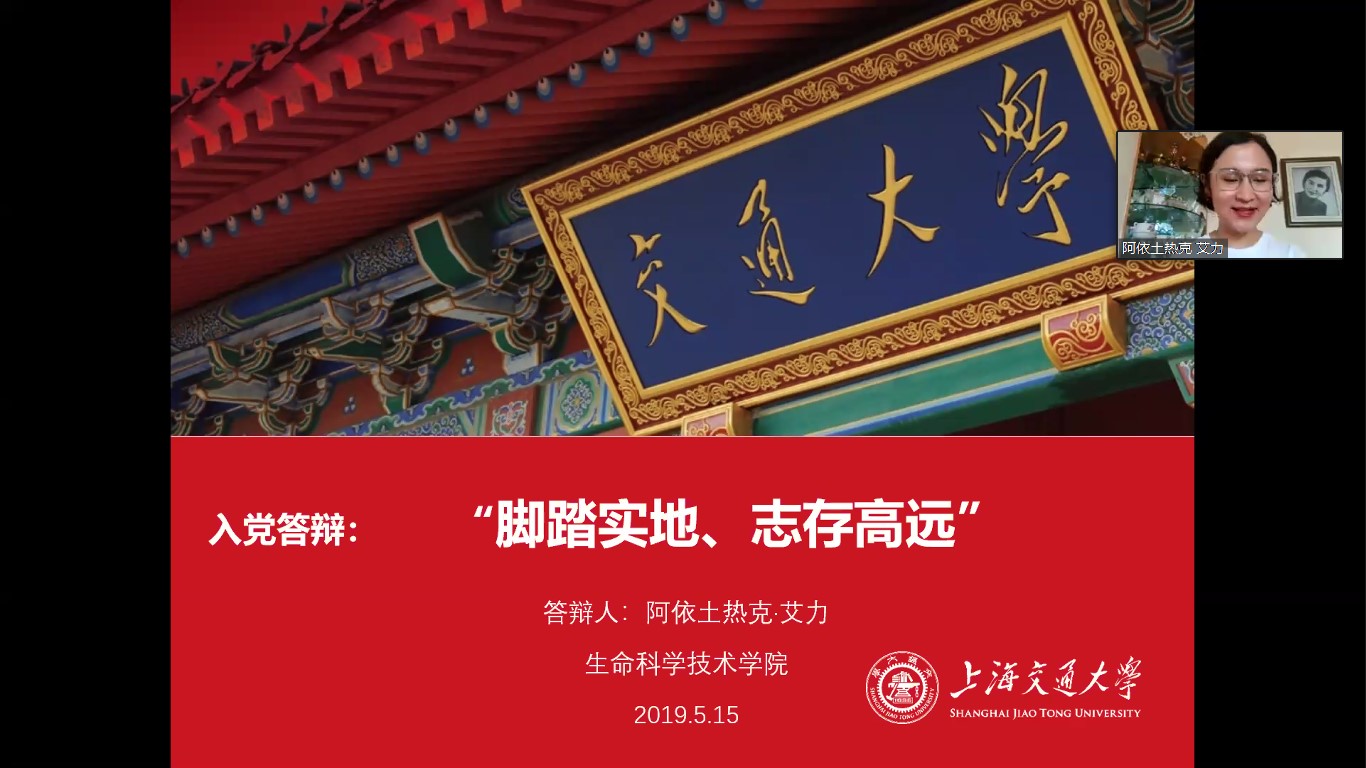 5月15日,上海交通大学生命科学技术学院在生命药学楼会议室举行入党积极分子发展入党答辩会,因疫情影响,此次入党答辩采取线上和线下结合的方式进行,共计34名学生入党积极分子参加。学院党委书记嵇绍岭、组织员段慧丹、学院特邀党建组织员陆秀英及学生党支部书记张燕红出席并担任评委,会议由张燕红主持。