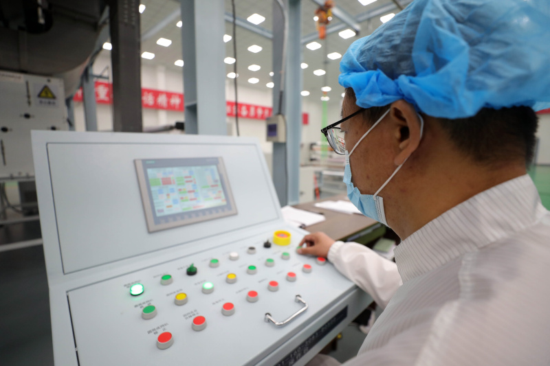 4月20日,工人在中国石油辽阳石化公司聚酯厂熔喷无纺布车间生产线上忙碌。新华社记者 杨青 摄