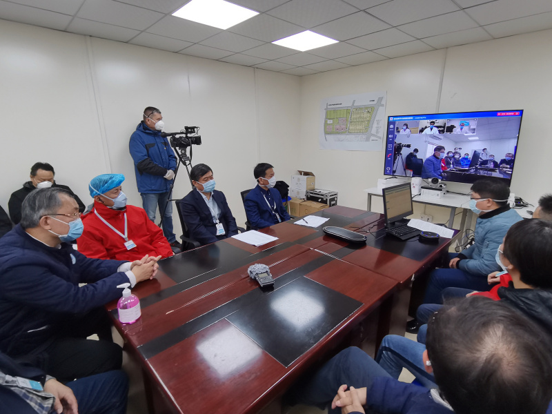 在5G、医疗云平台等技术支持下,新冠肺炎多学科移动远程会诊国家医疗队项目实现了“前方临床救治,后方多学科远程支持”的诊疗模式。这是2月27日在武汉雷神山医院拍摄的远程多学科会诊现场(手机拍摄)。新华社发(高翔 摄)