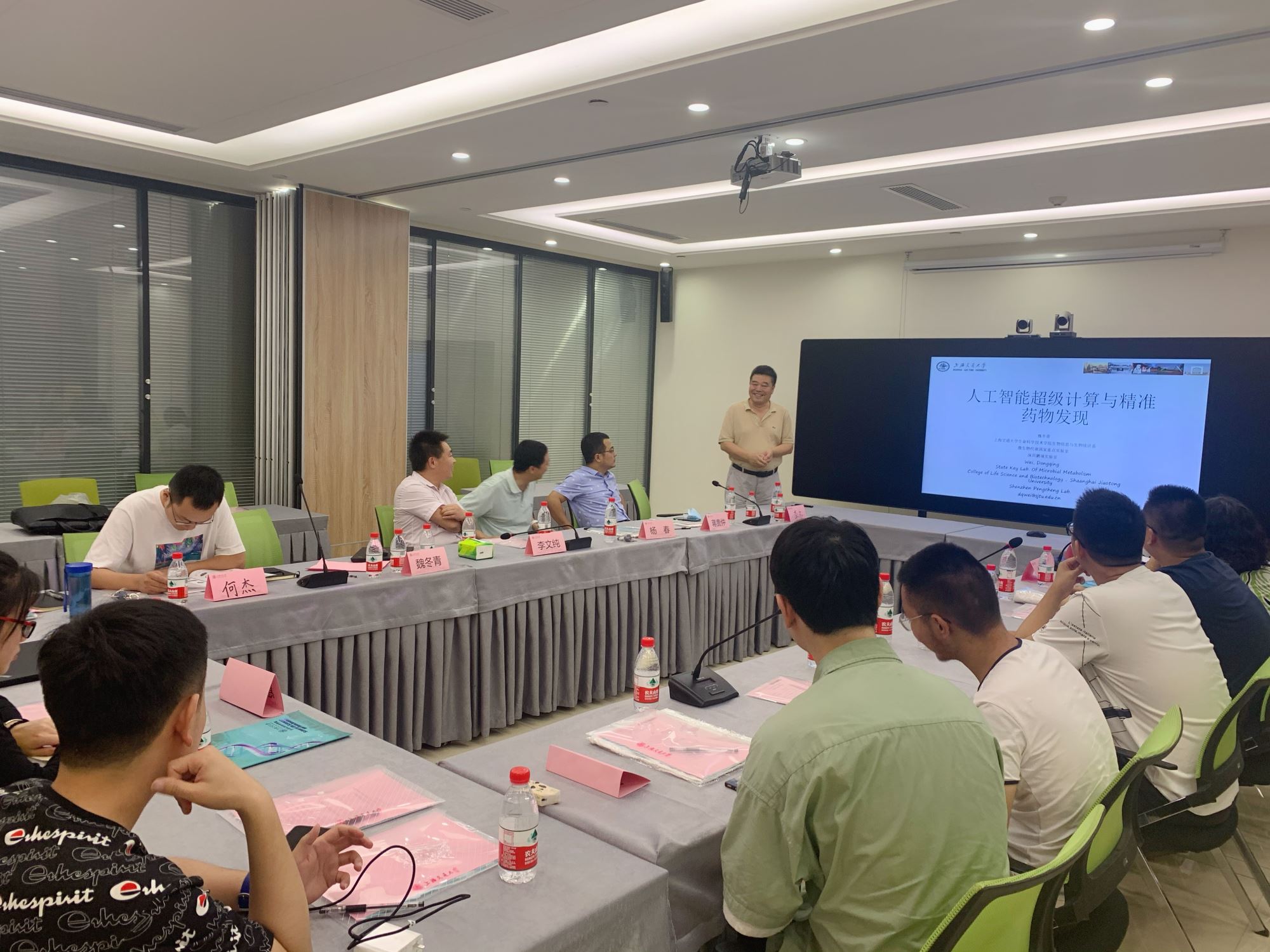 项目交流环节,魏冬青以“人工智能超级计算与精准药物发现”为题做报告,分享了超级计算及其学习方法在生物活性物质结构和活性功能研究方面的应用,并深入介绍了花椒素的研发及广阔应用前景,充分展示了人工智能计算在生命健康领域中的巨大发展潜力,与会人员就此主题展开热烈讨论。