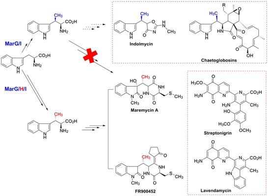 该研究不仅解开了自然界中两种构型的β-甲基色氨酸次级代谢产物形成的谜团,同时为定向合成β-甲基色氨酸和挖掘含有β-甲基色氨酸结构单元的天然产物提供了工具。