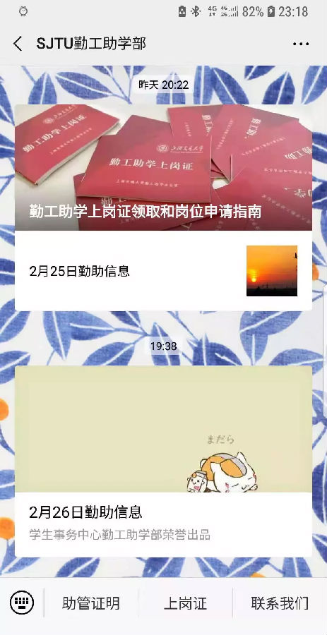 一键关注,就可以第一时间收到校内外的勤工助学信息啦,另外,微信上也会发布勤工助学上岗证考核、助管培训课程等信息。