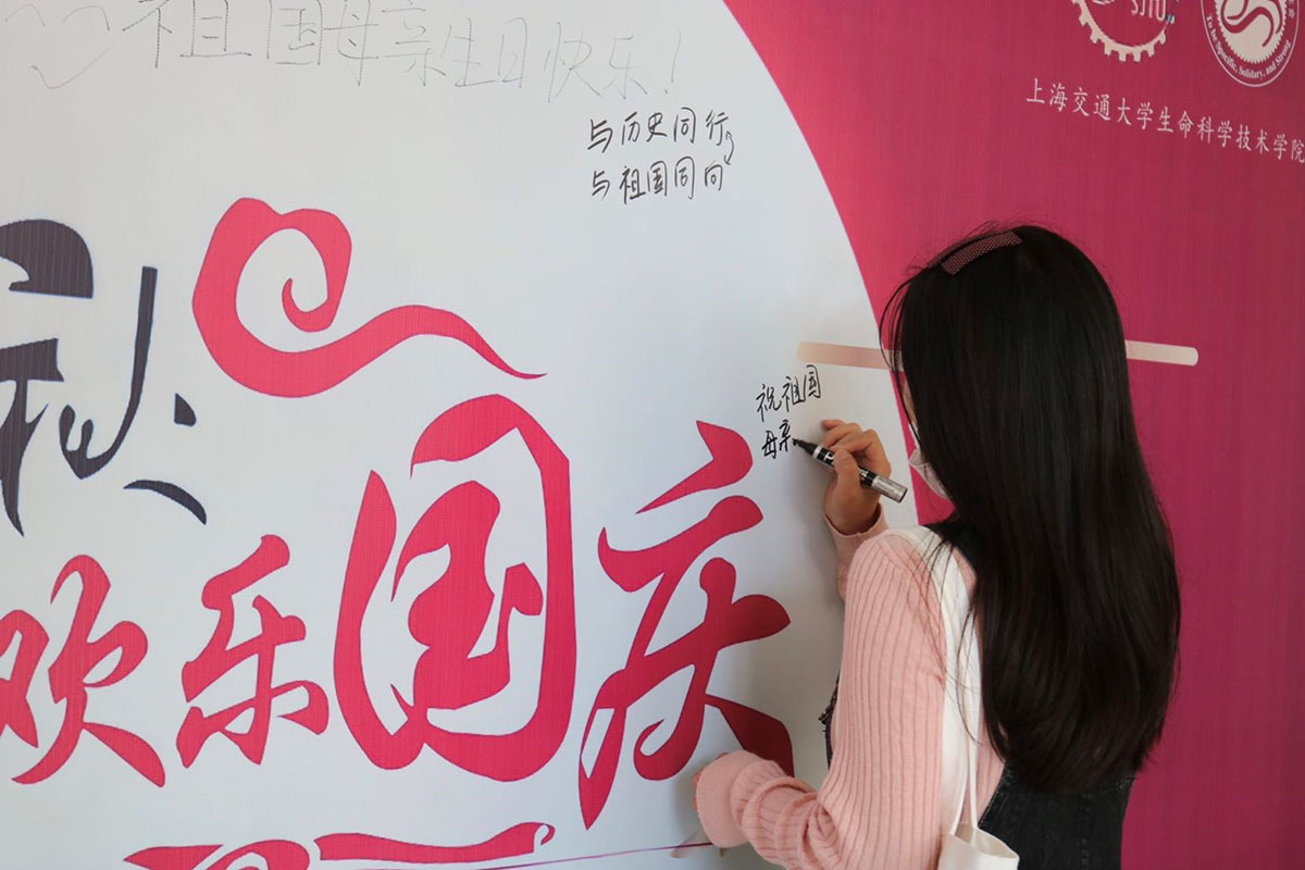 本次活动旨在表达对双节的美好祝愿,展现出新时代交大人对祖国的衷心祝福,青年学子要努力学习,发奋进取,把个人的成长进步融入到推动国家发展、民族振兴的时代洪流中!