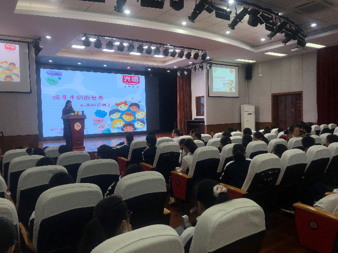 光明研究院扶晓菲同志向同学们详细介绍了各种乳制品的来源、区别、分类、营养价值等,拓展了同学们的知识面。科普团队为每位同学准备了酸奶和牛奶,同学们一边现场品尝产品,一边聆听讲座。在讲座过程中,同学们踊跃互动,表现出对乳制品相关知识的浓厚兴趣。