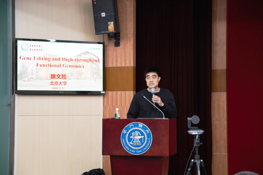 11月11日下午,北京大学魏文胜教授应邀做客求真讲坛,作题为《Gene Editing and High-throughput Functional Genomics》的主题报告。来自生命科学技术学院、系统院、药学院的教师、博士后、研究生等60余人参加了本次讲坛。由于疫情防控需要,本次讲坛线上线下同步开展,线上参会的师生为20余人。讲坛由生命科学技术学院副院长林双君教授主持。