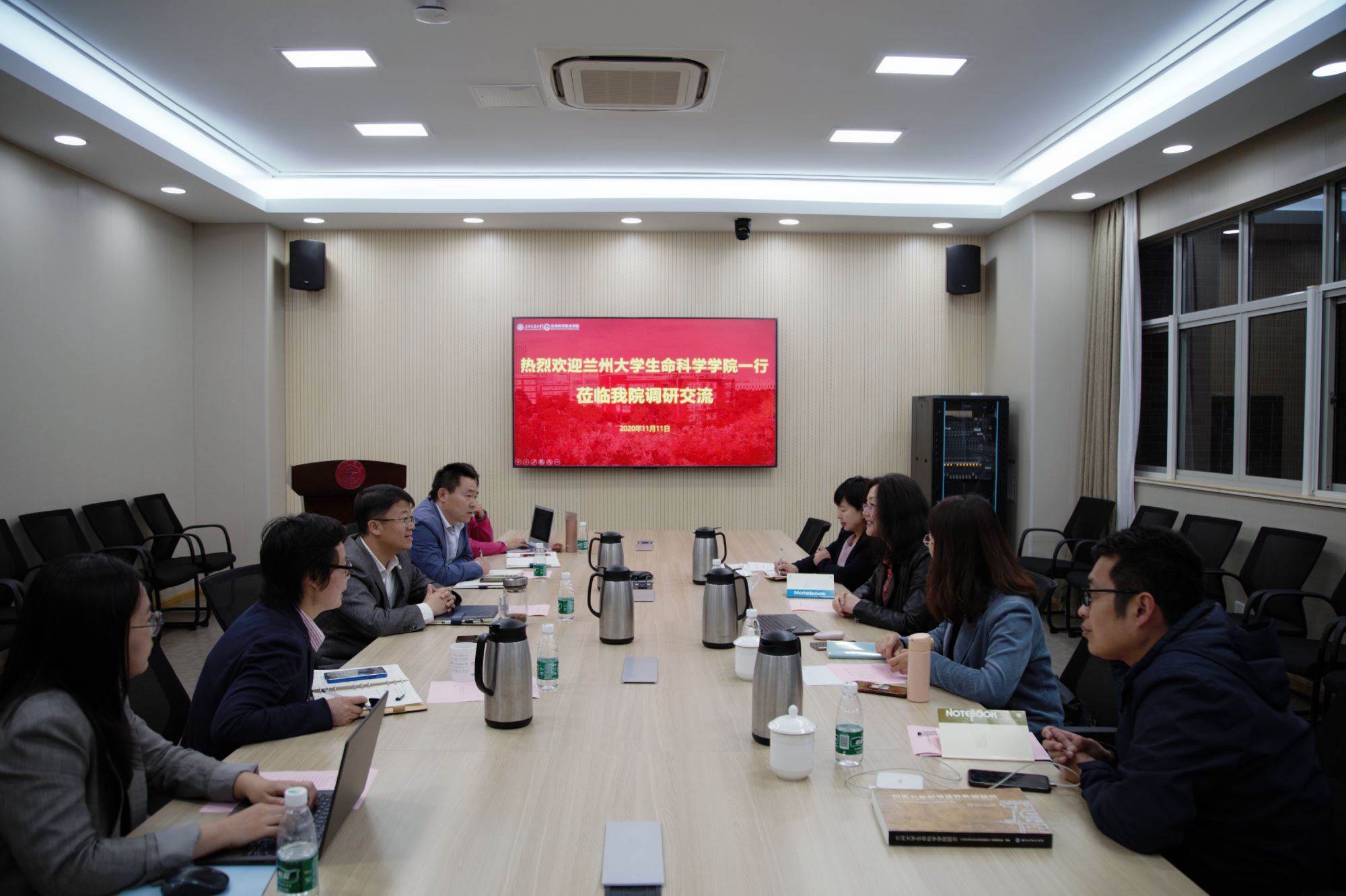 11月11日,兰州大学生命科学学院党委书记刘芳,党委副书记朱珊珊,组织员杨新华,团委书记、党务秘书李传辉一行四人到生命科学技术学院交流全国党建工作标杆院系创建工作。学院党委书记嵇绍岭,党委副书记李文纯、王鑫,学生办主任张燕红,组织员段慧丹参加了交流研讨。