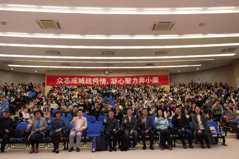 陈巍医生以“众志成城、全民抗疫”为主题向同学们开展了专题讲座。陈医生首先介绍了新冠肺炎病毒的传播机制、检测方法与治疗手段,而后从“出征、防护、创新、坚守、点燃、复苏、感恩”等不同视角切入,以生动鲜活的事例向与会师生还原了瑞金医院援鄂医疗队在抗疫一线的战斗历程。陈医生真切讲述了一线的医务工作者在面对新冠病毒时临阵不惧,坚守奋战,克服重重困难,以实际行动诠释“疫情就是命令,防控就是责任”的感人事迹,并在谈起艰苦工作历程时举重若轻,提到自己和另外一位重症医学科的主任医师轮班上阵,只为“万一一个倒了,另一个还能继续领导工作” 时引发了全场热烈的掌声。同样令陈医生印象深刻的是在抗疫过程中,医疗队成员彼此相互鼓励,并为患者带来了精神抚慰,用乐观的态度驱散了疫情的阴霾。在“创新”这一主题中,陈医生提到他所在援鄂医疗队救治与创新并举,在疫情救治期间共取得了38项医工交叉创新成果,申请了6项发明专利。最后他欣慰地说,疫情期间医疗队成员严抓院感防控工作,医务人员无一感染,同时还开展了医学生线上教育,将战疫精神薪火相传……白衣为甲奋战抗疫一线,赤子丹心力保国泰民安——瑞金医院援鄂医疗队与其他无数奋战抗疫的英雄一起,唤醒了沉睡的江城。