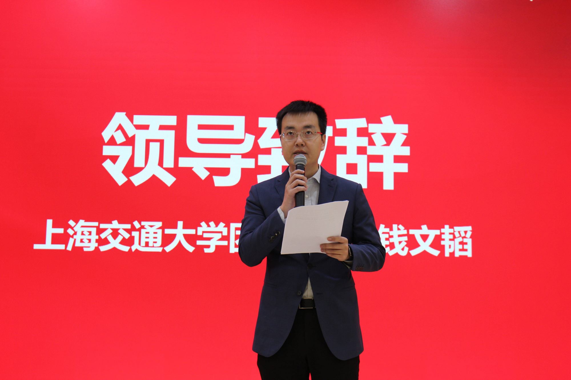 钱文韬致辞,他勉励交大青年学子向抗疫一线的医务人员、党员先锋学习,要肩负起在中华民族伟大复兴的历史征程中自身的使命,并给青年学子和学生党员提出三点要求:一要有立志成才、厚植家国情怀的信念。二要有博学笃行、练就过硬本领的信心。三要有追求卓越、创造精彩人生的信仰。