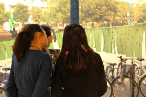 同学积极参与猜灯谜活动