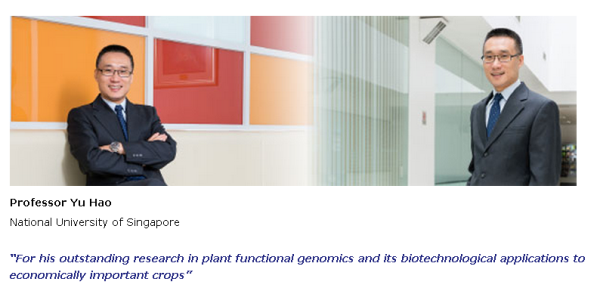 2013年9月25日,上海交通大学校友、新加坡国立大学生物系教授俞皓因在植物功能基因组学方面的出色研究成果及其在重要经济作物应用中的突出贡献,荣获2013年新加坡总统科学奖。新加坡总统科学奖是新加坡科学界的最高荣誉,俞皓教授由此成为该奖项第一位获奖的植物学家,也是第一位获得此项殊荣的交大校友。