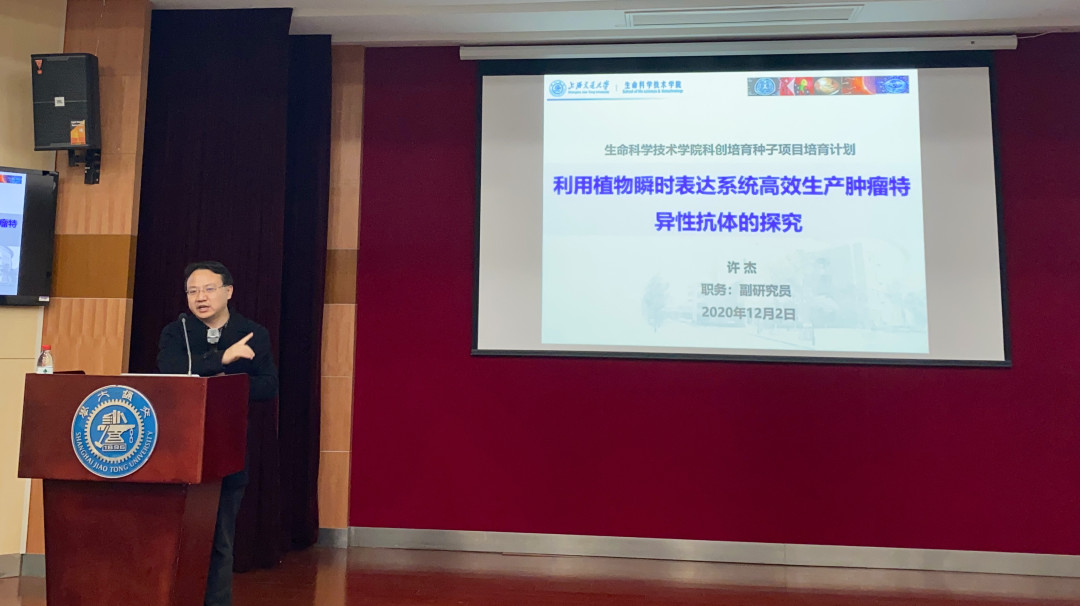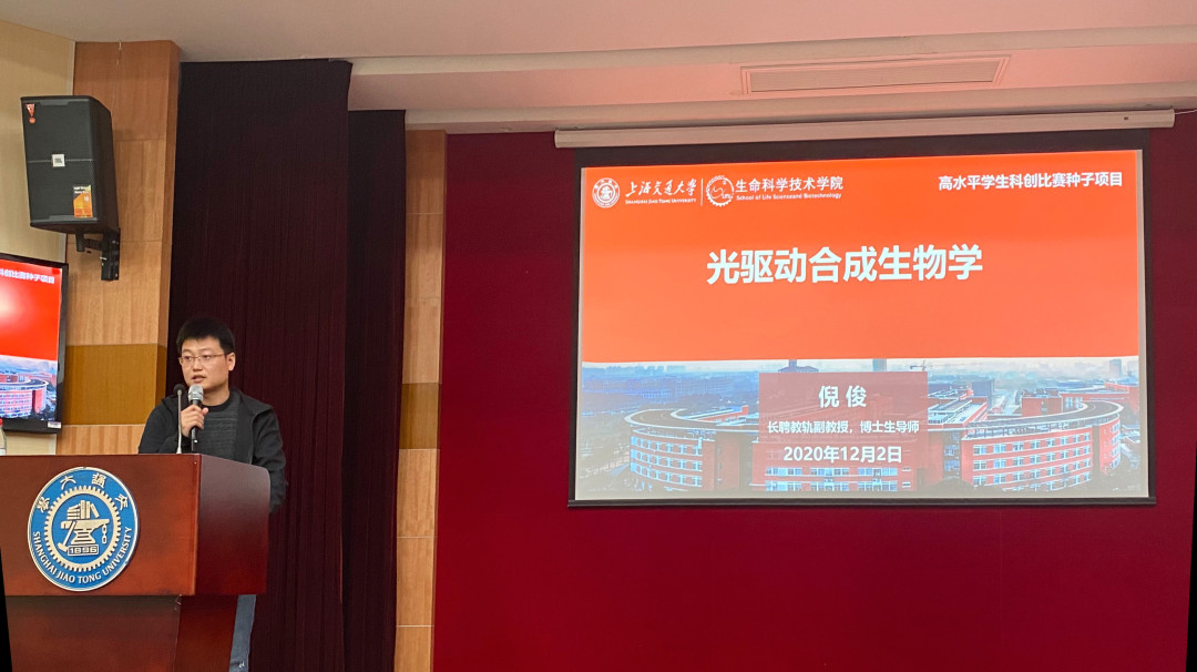 七位教师和项目负责人分别向同学们介绍了自己指导的高水平学生科技创新竞赛项目,包括许杰《利用植物瞬时表达系统高效生产肿瘤特异性抗体的探究》,韦朝春介绍iGEM 竞赛以及软件队 SJTU-software,倪俊《光驱动合成生物学》,肖晗《蘑菇真菌源重要化合物的高效生产》,李丹课题组《冠状病毒蛋白相分离引发神经退行性疾病的探究》,陈海峰课题组《蛋白质设计:站在蛋白质科学新时代的交叉口》以及秦胜营课题组《基因调控区差异甲基化在精神分裂症中的功能机制研究》七个项目。