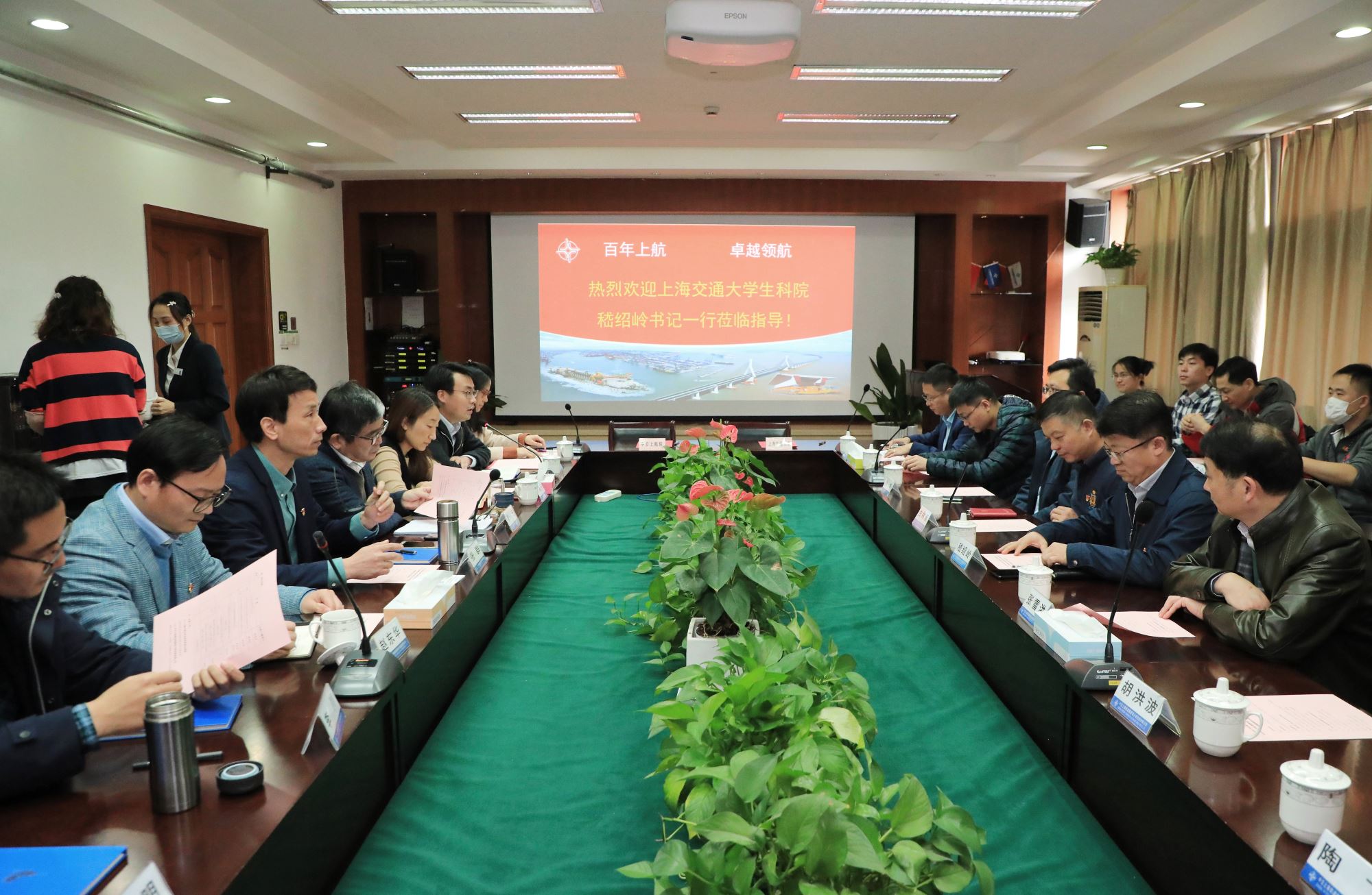 在学院党委书记嵇绍岭的带领下,十六位党员同志赴中交上海航道勘察设计研究院有限公司开展党建交流活动,会议由上航院党群工作部陈昱贤同志主持。