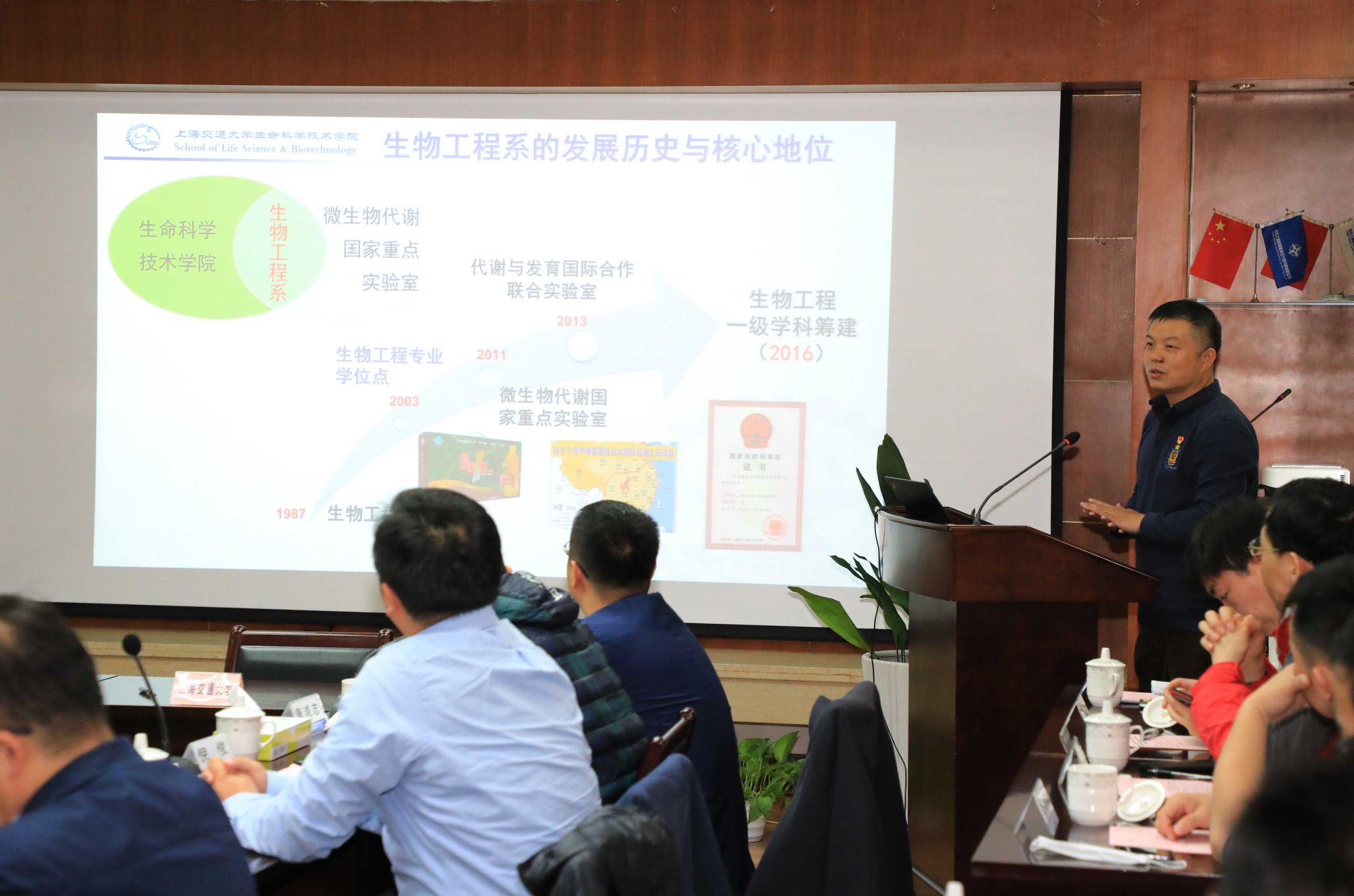 接着,双方支部党员就业务与技术方面展开深入交流。上航院环境研究所所长赵东华介绍了环境研究所和中试研究基地的情况,内河水环境所总工程师李川简要介绍了水环境板块业务情况。生物工程系主任白林泉教授着重介绍了微生物代谢国家重点实验室以及生物工程系的概况,生物工程系唐鸿志教授介绍了环境与工业微生物技术研究团队的研究成果。