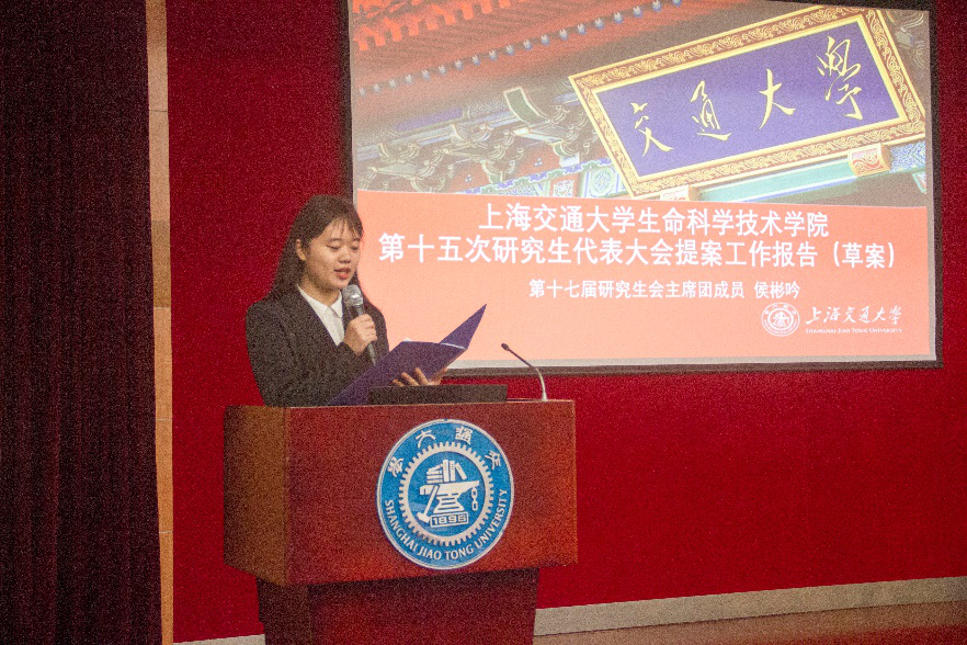 研究生会主席团成员侯彬吟宣读《第十五次研究生代表大会提案工作报告》,简洁凝练地提出了具有代表性的提案,切实关注学院研究生的根本利益。与会代表审议并通过了各项工作报告。