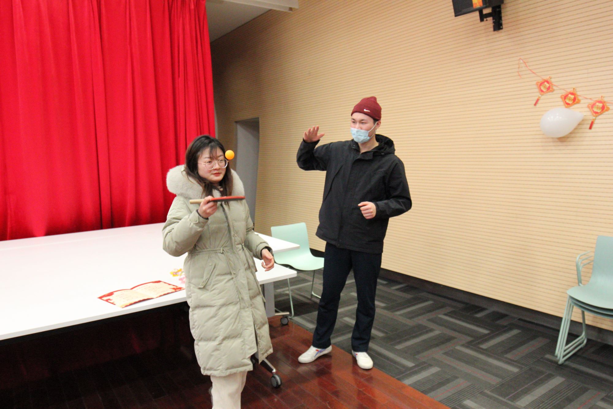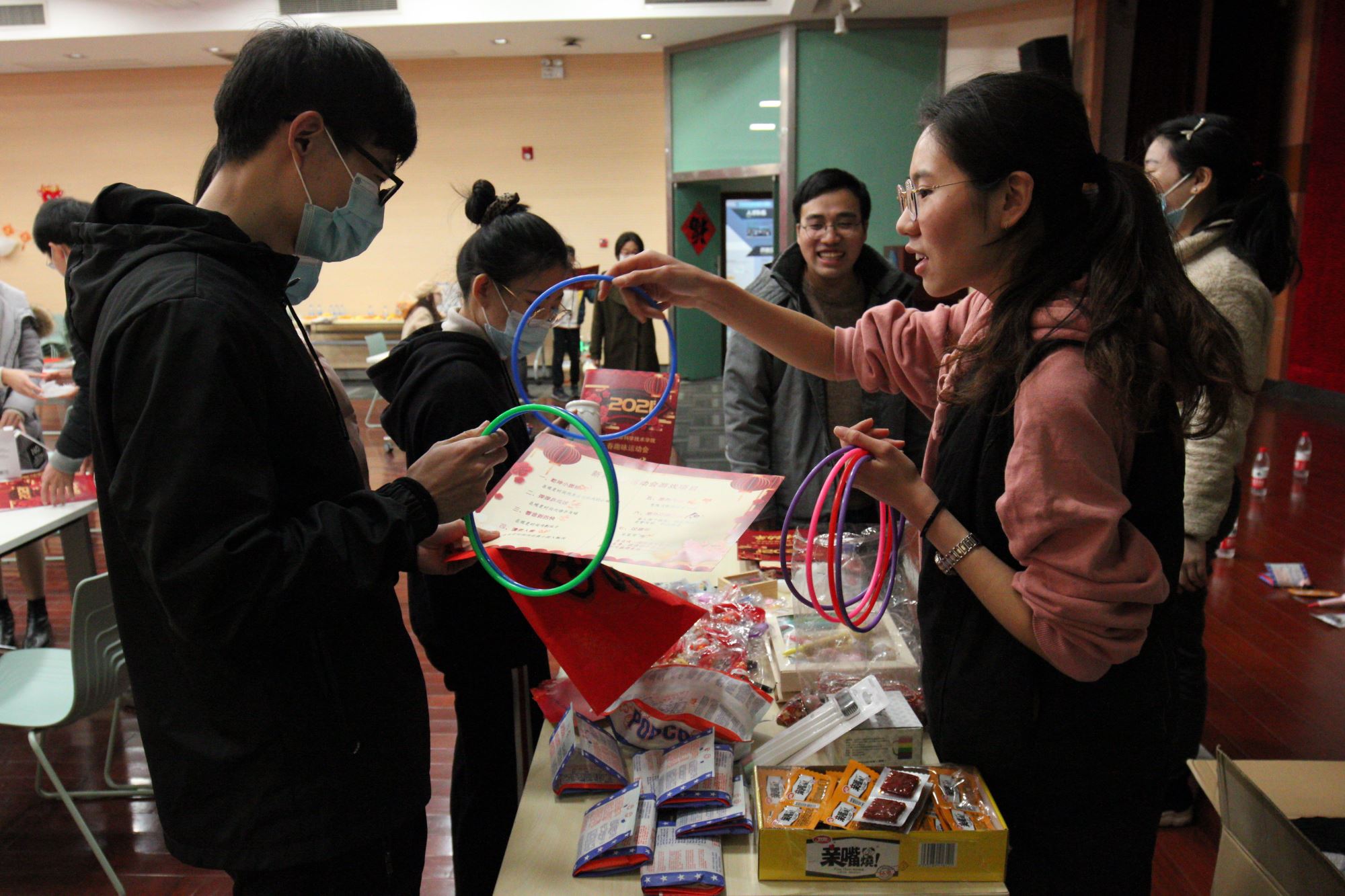 下午,学院组织了留校学生新春趣味运动会,集趣味性、竞技性于一体的弹弹乒乓球、夹玻璃弹珠、看谁剥得快、毛笔写福字、室外飞镖等活动项目,让现场洋溢着欢声笑语,热闹非凡。