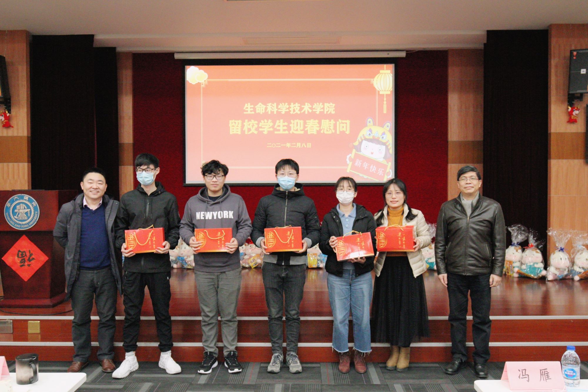 温暖相伴迎新春,生命科学技术学院有200余名学生寒假留校进行科研、学习工作,学校和学院为留校过年的同学们做了充分的生活服务保障,让每一位留校的生科人感受到“家”的温暖。