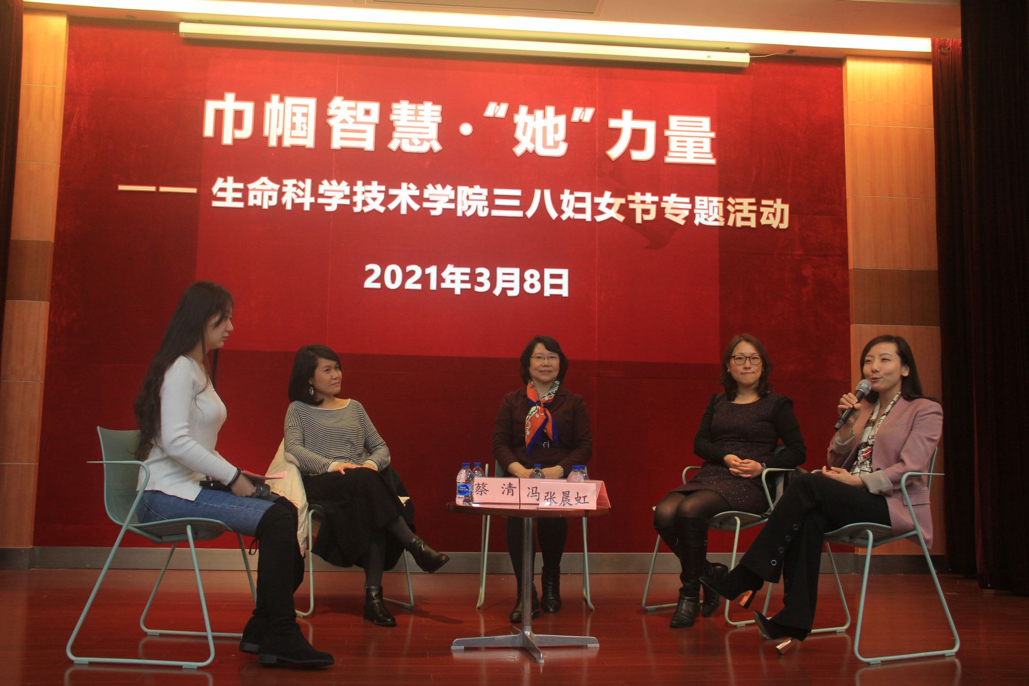 3月8日,为庆祝第111个国际妇女节的到来,生命科学技术学院举办了“巾帼智慧·‘她’力量”妇女节专题活动,邀请了四位优秀的女性榜样与师生现场交流。学院常务副院长冯雁、党委副书记李文纯、1997届校友马海宏、2002届校友蔡清、生命科学技术学院研究员张晨虹等出席活动。