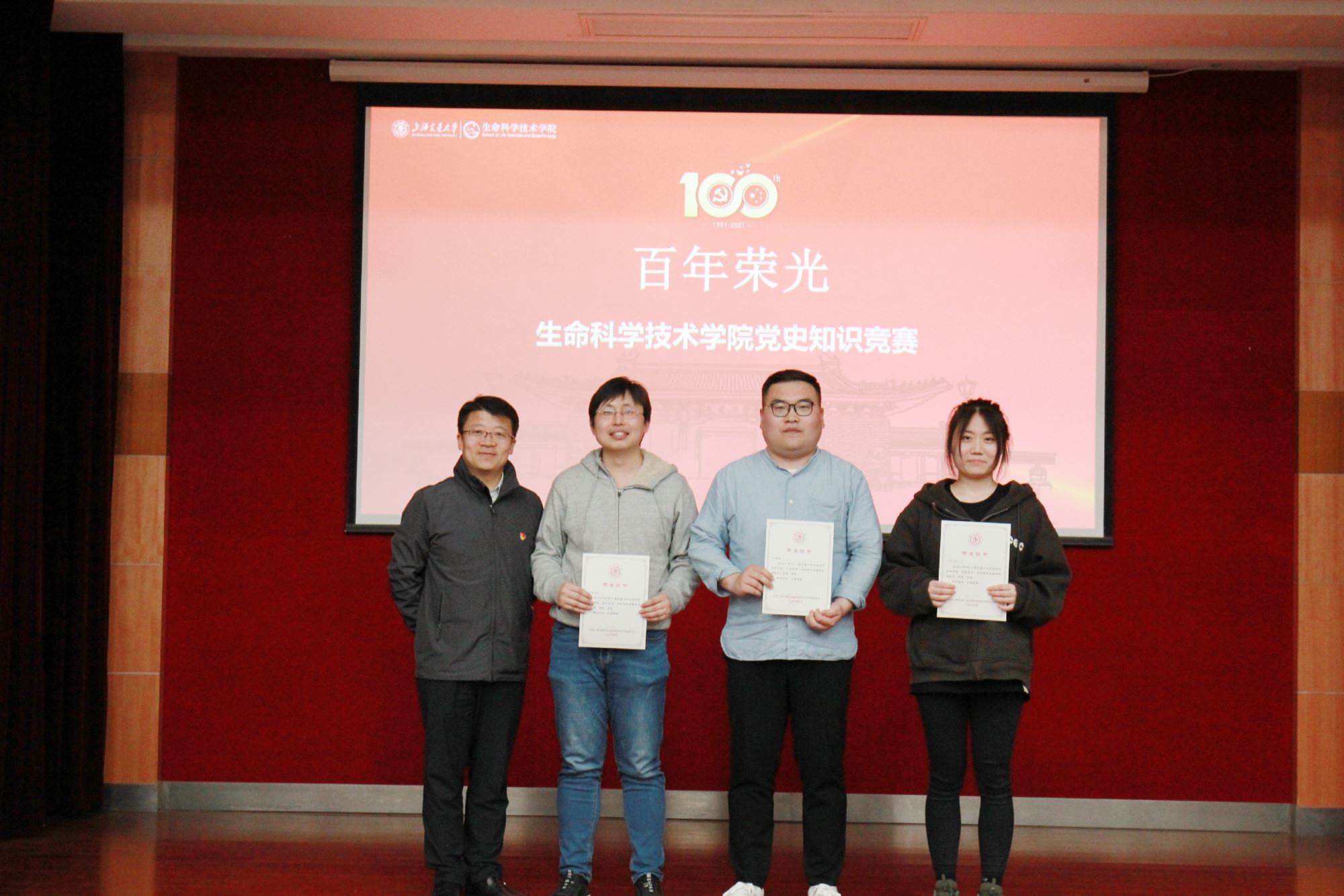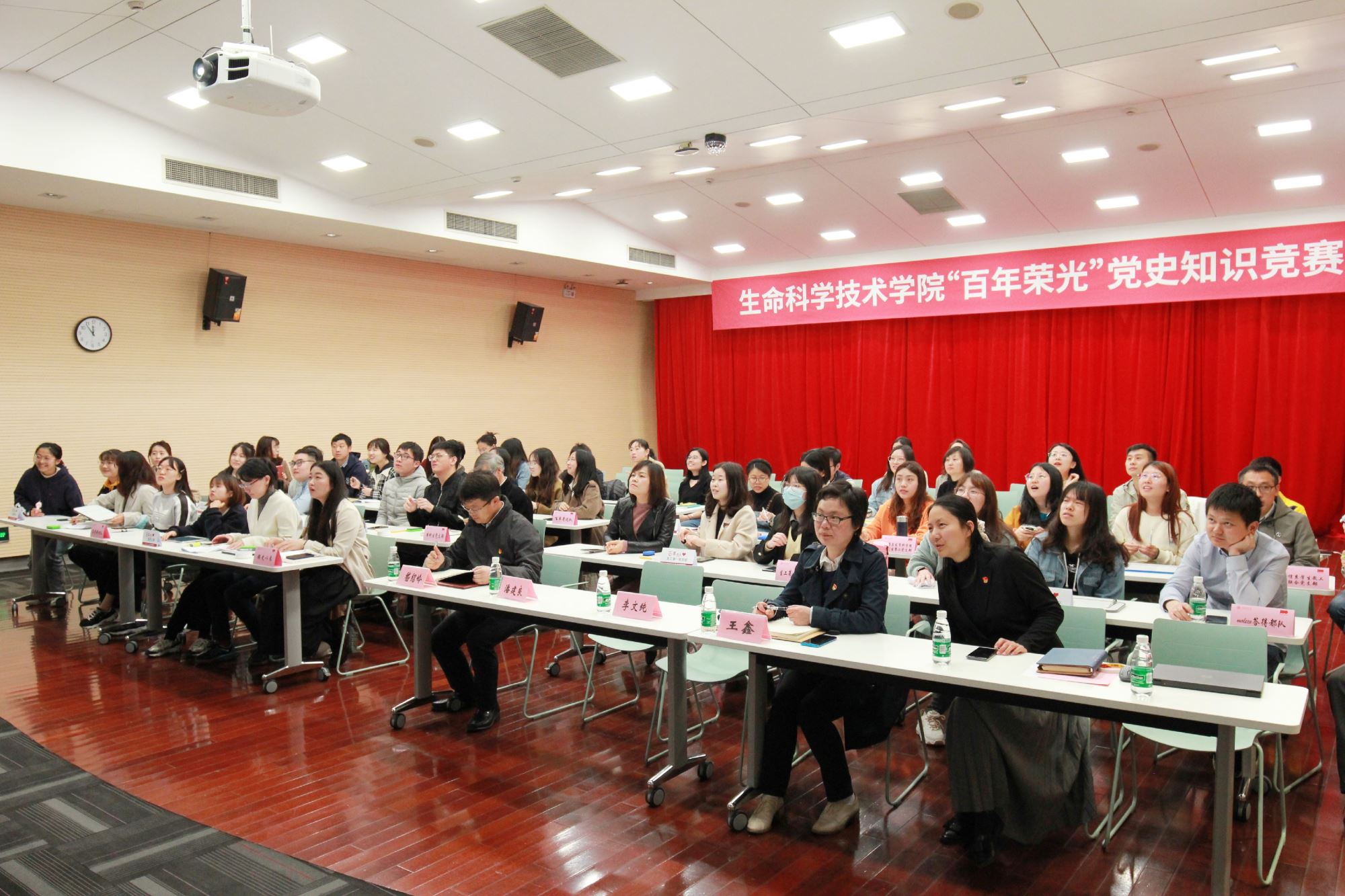 为喜迎中国共产党成立100周年,回顾中国共产党团结和带领全国各族人民不懈奋斗的光辉历程,4月14日,生命科学技术学院 “百年荣光”党史知识竞赛活动于生命药学楼树华多功能厅顺利举办。学院党委书记嵇绍岭,党委副书记李文纯、王鑫,党政办公室主任张燕红及特邀退休教工党支部代表潘建良出席活动,来自各党支部的师生党员组成14支队伍参加此次竞赛。