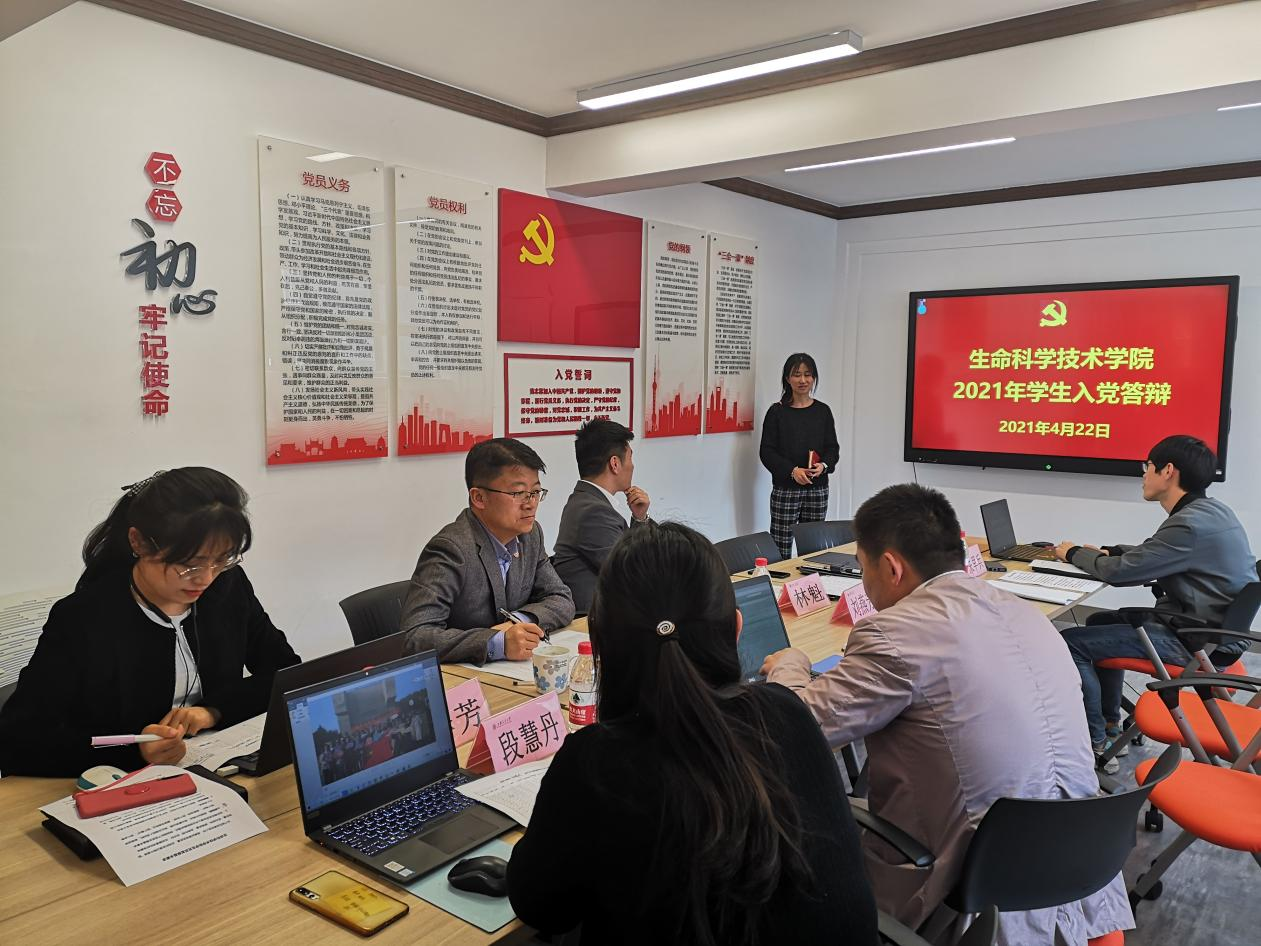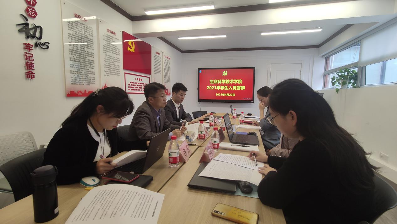 为质量并重做好党员发展工作,以优异成绩迎接建党百年,4月21日、4月22日下午,生命科学技术学院在学院“党员之家”举行了2021年上半年积极分子入党答辩。学院党委书记嵇绍岭,党委副书记李文纯、王鑫,特邀党建组织员陆秀英,组织员段慧丹以及思政教师、学生党支部书记代表担任评委。本次答辩由学生党总支书记刘燕芳主持。
