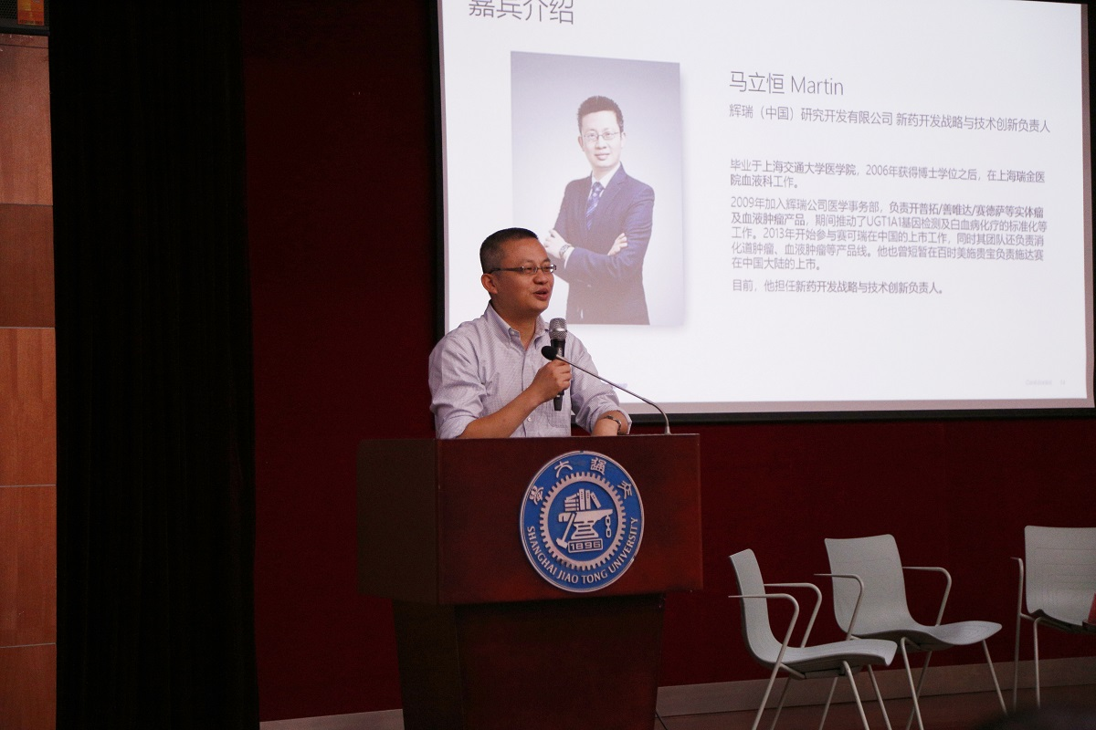 马立恒简单介绍了新药研发到临床应用中临床试验、随机、双盲等过程,又引申到了这些实验的实现和控制方法,告诉同学们从所学到应用的距离并不遥远。他认为现代是生物制药的时代,但是目前对于药物研发所使用的靶点,还是以仿制为主,缺乏大量的创新。而后,他又以在公司的研发经历为例,说明了基础研究对于发现新靶点与延长病人寿命的重要意义。对于同学们在选择职业生涯上的困惑,他也给出了启发性建议。