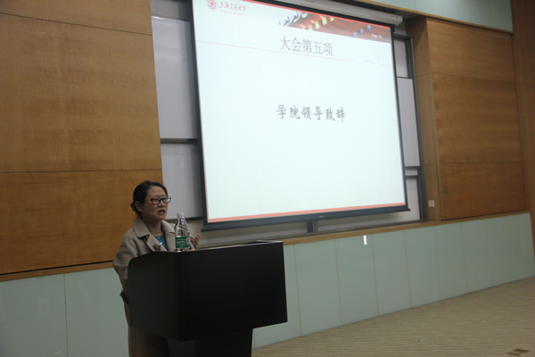 仰颐代表学院领导对到场的各位嘉宾以及研究生代表们表示衷心的感谢,对本次大会的召开表示热烈的祝贺。她用学术性、实用性、娱乐性及国际化四个词总结了研会开展的各项活动,对第十三届研究生会在一年学生工作中的辛勤付出以及取得的出色成绩表示极大的肯定和诚挚的谢意。同时,仰书记对下一届研会的工作提出三点要求:一是希望研会加强实时调研、夯实工作基础,了解研究生的呼声和需求;二是加强学习、引领发展,起到先锋模范带头作用;三是勇于奉献、善于统筹,协调和平衡好学习、科研与学生工作的关系,统筹资源,争取学业事业双丰收。