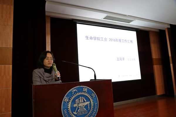 院工会主席王风平首先作生命科学技术学院工会2016年工作报告。她介绍了学院组织的丰富多彩的文体活动以及参与学校组织的运动会、第三届交大文化艺术节等活动的情况,学院工会还以妇女之家为核心积极开展关爱女教师的各项特色工作与活动。王风平还作了工会2016年财务决算报告。