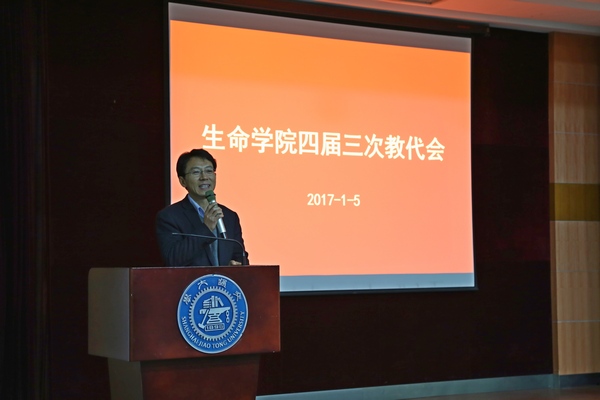 院党委书记仰颐就2016年度生命科学技术学院财务收支情况、学院经费管理理念与发展方向等向教代会作了报告报告。
