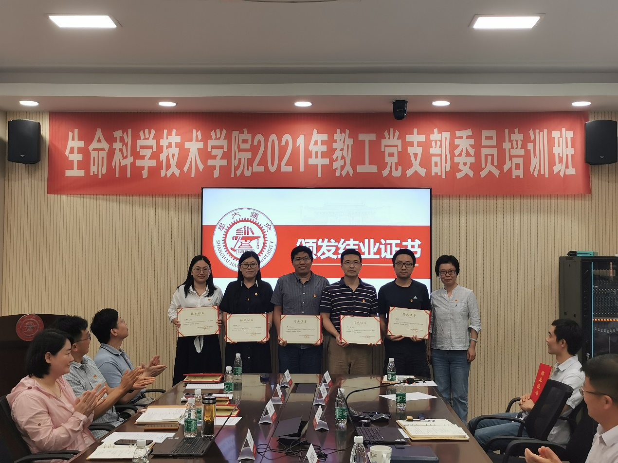 接着举行2021年教工支委培训班结业仪式。由培训班班主任王鑫副书记简要回顾培训班开展情况;由与会党委委员向学员颁发结业证书;由徐俊、张萍两位小组长分享培训体会及小组研讨情况。