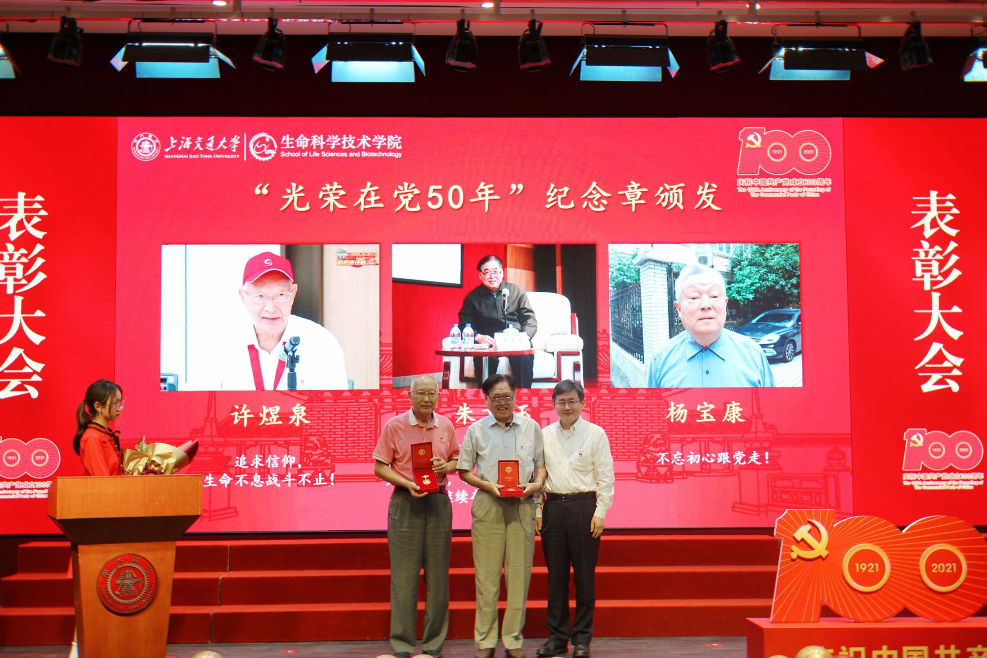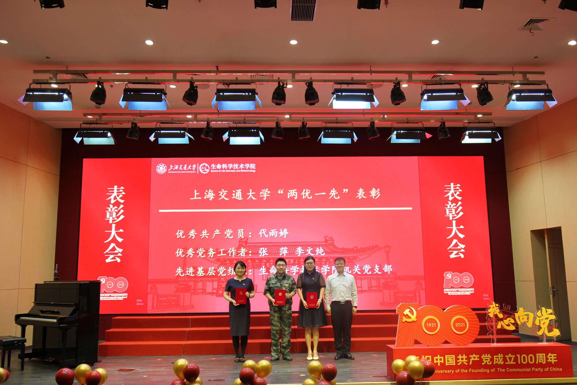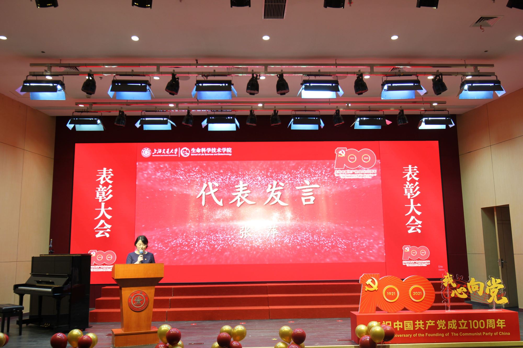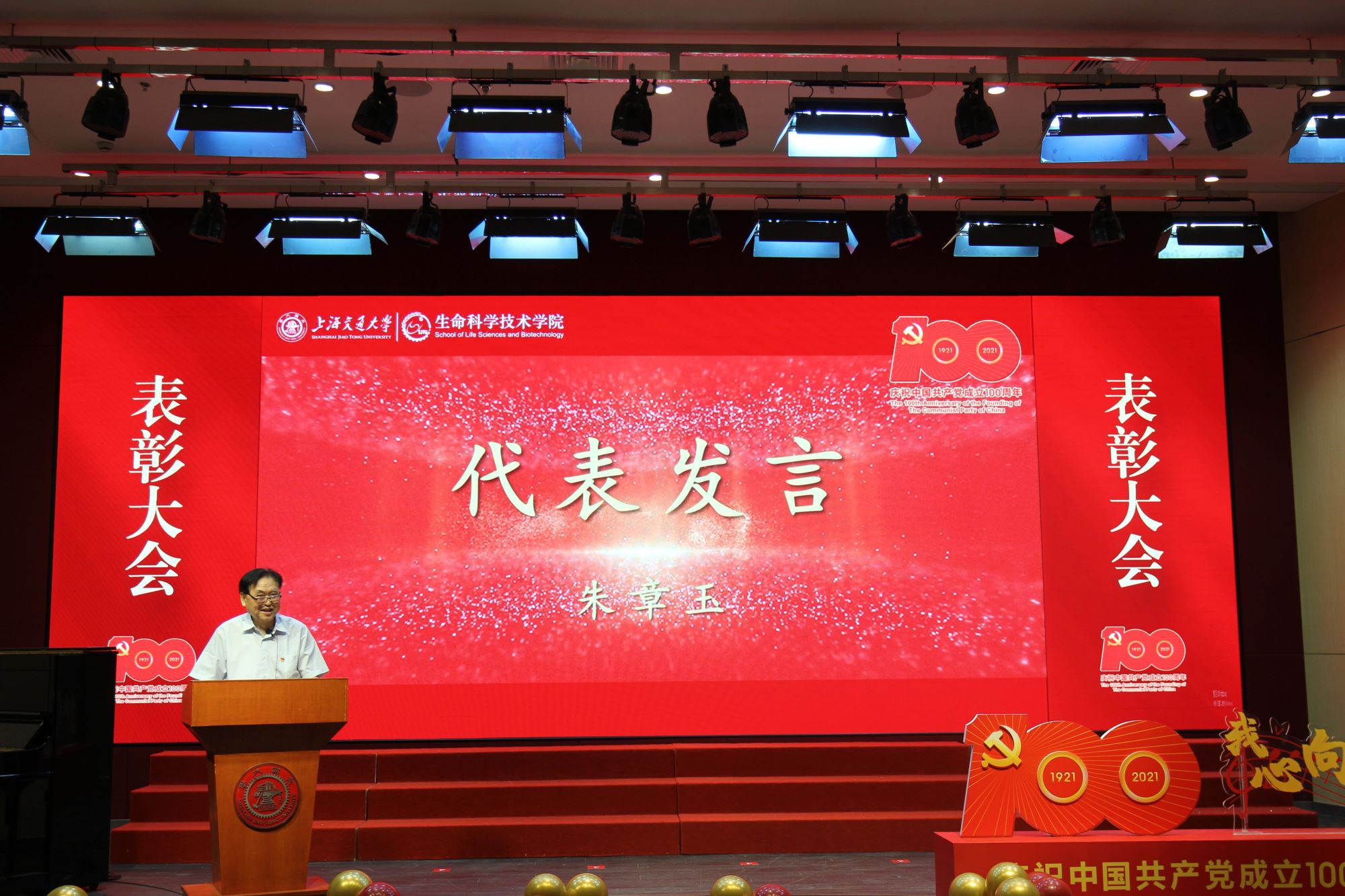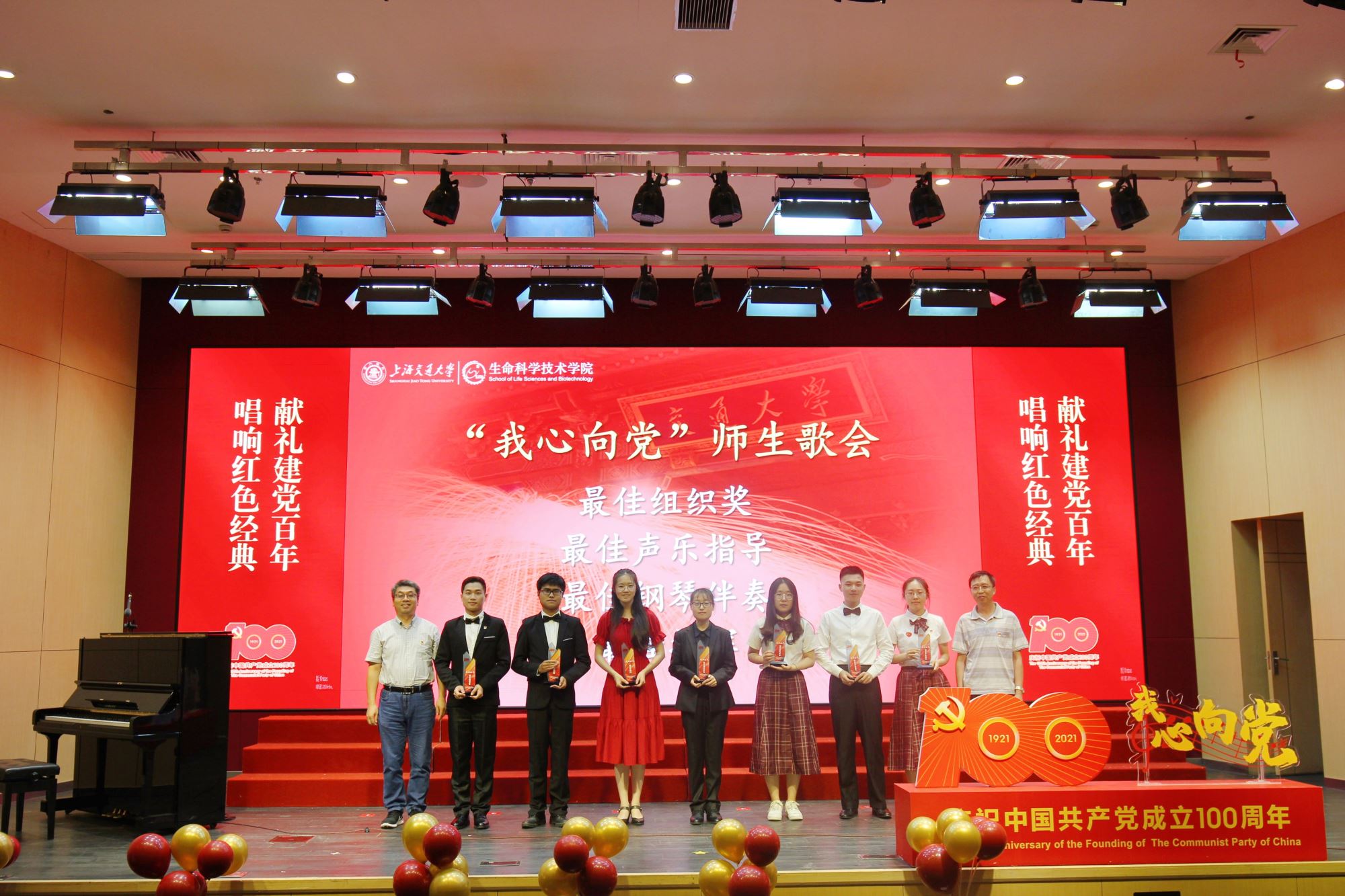 为隆重纪念中国共产党100周年华诞,热情讴歌中国共产党领导中国革命和建设取得的伟大成就,厚植师生爱党爱国情怀,营造富有激情、富有红韵的学院文化氛围,6月28日下午,生命科学技术学院举办庆祝建党100周年“我心向党”师生歌会暨表彰大会。校党委常委、常务副校长丁奎岭,校党委常委、组织部部长仰颐,图书馆党委书记董玉山,妇委会副主任郑敏,校团委书记钱文韬,生命科学技术学院党委书记嵇绍岭,常务副院长冯雁,副院长张晓君、林双君,党委副书记王鑫,党委委员张雪洪、白林泉,原常务副院长朱章玉,原党总支书记、退休教工党支部书记罗九甫,原党总支副书记、退休教工党支部副书记陆秀英、退休教工党支部委员潘建良,退休教工党支部许煜泉,歌会艺术指导王丽华等出席活动,学院师生共同唱响红色经典,抒发对党和祖国的深情热爱。