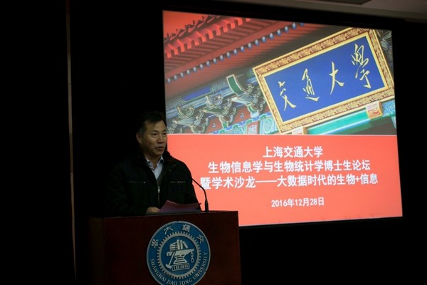 杨根科教授在致辞中强调,大数据时代下生命科学将拥有突飞猛进的发展前景。陈峰也希望生物信息与生物统计学系的老师同学能够抓住机遇,通过本次活动促进学术交流,增强科研创新意识。