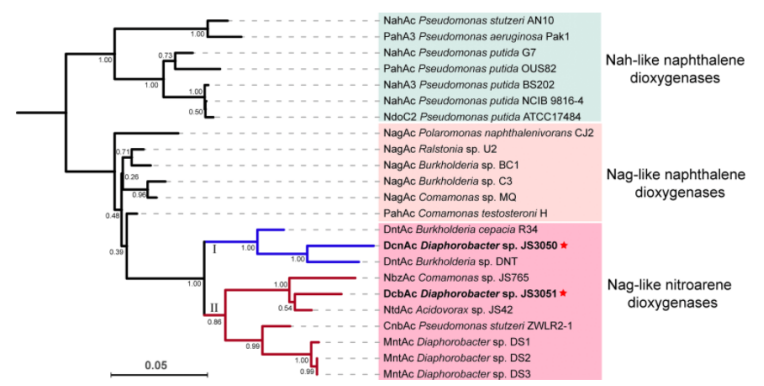 近日,上海交通大学生命科学技术学院、微生物代谢国家重点实验室周宁一教授团队解析了两种二氯代硝基苯的代谢机理及其进化渊源。相关成果“A Nag-like dioxygenase initiates 3,4-dichloronitrobenzene degradation via 4,5-dichlorocatechol in Diaphorobacter sp. strain JS3050” 发表于《Environmental Microbiology》,博士后高义舟为第一作者,周宁一教授和美国西佛罗里达大学的Jim C. Spain教授为通讯作者。另一成果“A recently assembled degradation pathway for 2,3-dichloronitrobenzene in Diaphorobacter sp. strain JS3051”发表于《mBio》,博士后李涛为第一作者,周宁一教授为通讯作者。