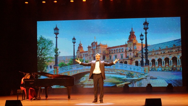 我院德籍俄裔教师Ilya A. Vinnikov 的《塞维利亚的理发师》演唱赢得了全场的热烈掌声。Vinnikov 的歌声抑扬顿挫,表演生动活泼;Vinnikov夫人的钢琴伴奏弹奏流畅、娴熟,两人的Vinnikov的配合可谓天衣无缝。