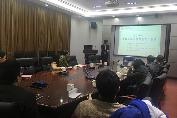 12月5日,生命科学技术学院班主任工作总结交流会在学院2-116会议室召开。学院党委副书记郑敏、学生办主任张燕红、教务办负责人谭晶、本科生工作负责人刘环、本科生教务老师刘卫宇及所有班主任参加会议。本次交流会围绕“学在交大”、“双一流大学”创新人才培养主题,回顾和总结了本年度本科生班主任工作。会议由刘环主持。