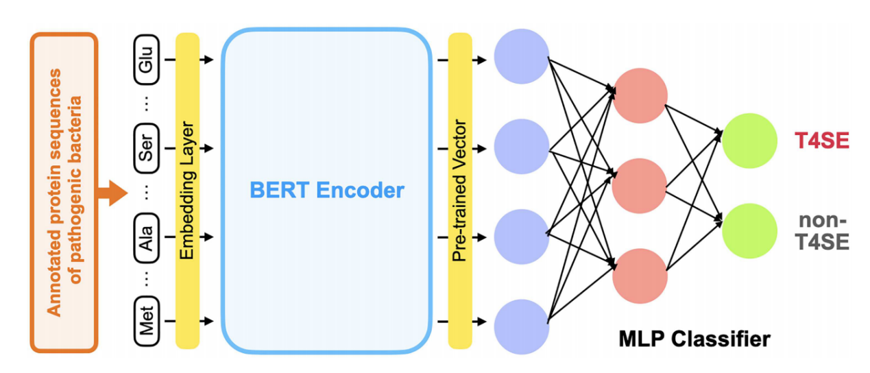 近日,上海交通大学生命科学技术学院微生物代谢国家重点实验室在生物信息学顶级刊物《Briefings in Bioinformatics》(IF:11.622)上发表题为“T4SEfinder: a bioinformatics tool for genome-scale prediction of bacterial type IV secreted effectors using pre-trained protein language model”的研究论文。该文将人工智能方法应用于细菌IV型分泌系统效应蛋白预测的场景,提供了一款新的、适用于细菌全基因组规模的预测软件。生命科学技术学院硕士生张昱朦和张阳明为该论文的并列第一作者,生命科学技术学院欧竑宇教授和澳大利亚莫纳什大学生物医学发现研究所宋江宁副教授为该论文的共同通讯作者。