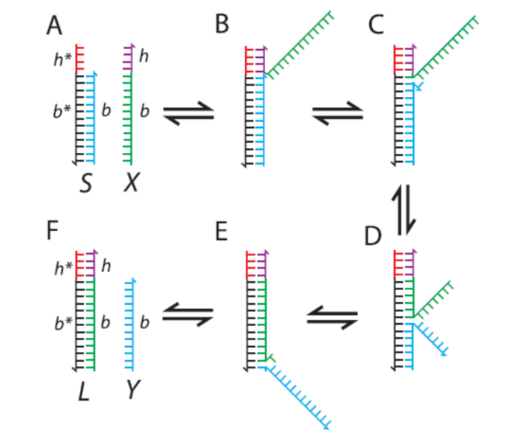 SJTU-BioX-Shanghai还引入了基于核酸链置换反应(TMSD)的优化策略来进一步缩短检测时间,降低制作成本。通过在体外转录反应中引入一段和aptazyme内部序列互补的寡核苷酸,它将能够通过互补配对打开aptazyme原有的二级结构使之失去功能,因此完整的aptazyme序列得以在待测的靶标分子不存在的情况下被合成并保存。需要进行检测时,只需要加入与第一段寡核苷酸互补的另一端寡核苷酸将最初的寡核苷酸竞争下来,释放aptazyme,让它恢复正常构象,即可实现剪切活性的恢复。