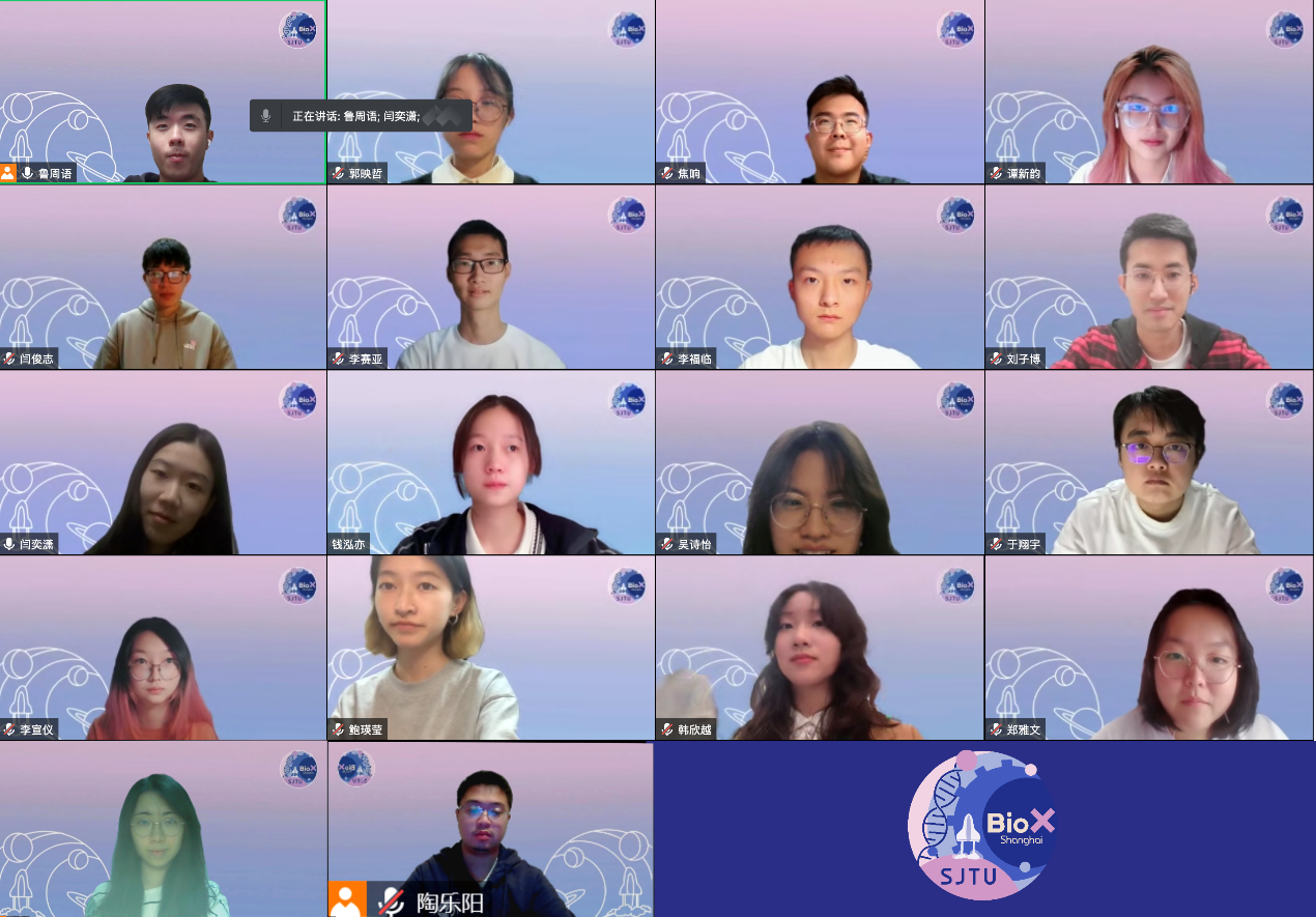 SJTU-BioX-Shanghai团队由贺林院士、马钢副研究员、王毓舒老师指导,团队成员由来自生命科学技术学院的陈柏润、费嘉琪、胡鼎康、江向海、罗诗涵、任思源、张杰汉、张子骜、周芷诺,致远学院代若冰、卢毓昕、于希、朱子健,农业与生物学院刘子逸和乔滢瑞,环境科学与工程学院贺玉莹,海洋学院李奕帆,设计学院韩欣越,共18名本科生以及陈自修、钱弘毅、肖琛涵三名高中生组成。2020年团队队长李可依,队员钟博子韬、冯宸煦、刘江影、方震、陈子瑶等担任技术指导。