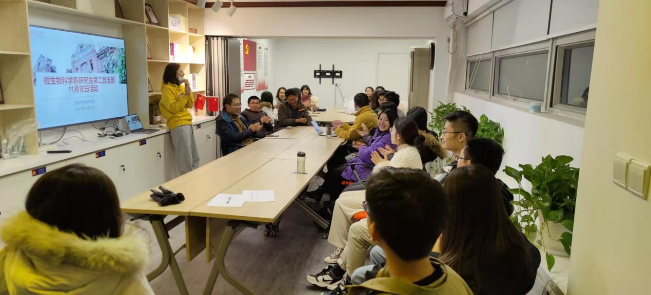 为深入学习十九届六中全会精神,从党的百年奋斗历程中汲取智慧和前行力量,2021年11月23日,生命科学技术学院微生物科学系研究生第二党支部在生科院“党员之家”开展以“学习十九届六中全会精神,争做新时代先锋模范党员”为主题的党日活动。本次党日活动由支部书记祁晓妍同志主持,支部党员同志、积极分子和入党申请人共28人参加。