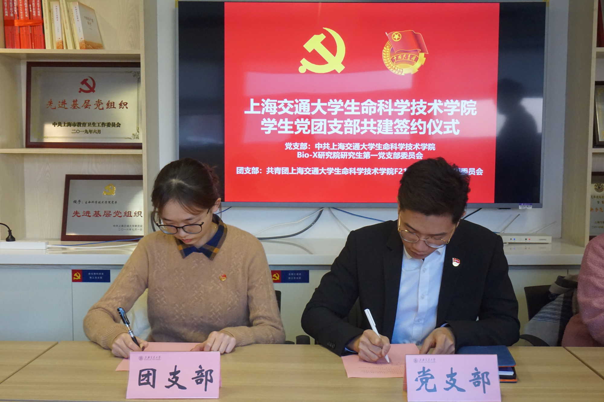 会上,刘燕芳介绍了学院党团支部共建的背景及意义,分享了前期党团联动开展的优秀案例,并解读党团支部共建责任清单。共建双方党支部书记和团支部书记共同签署《上海交通大学生命科学技术学院学生党团支部结对协议书》。