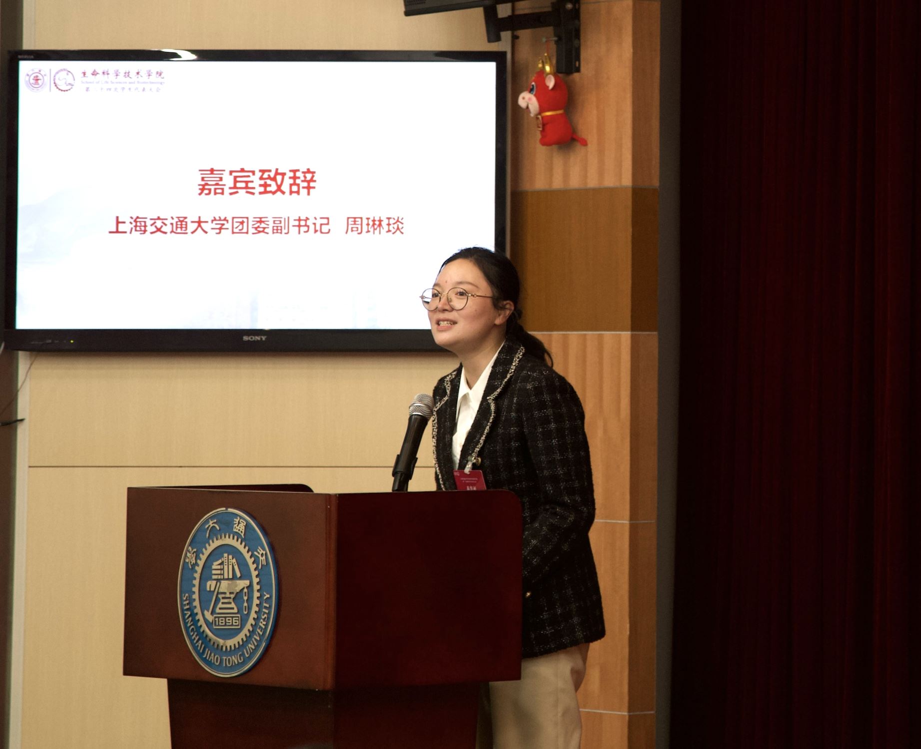 共青团上海交通大学委员会副书记周琳琰致辞。周琳琰代表校团委向大会的胜利召开表示热烈祝贺,向长期以来关心、重视、理解和支持共青团工作的学院党政领导表示衷心的感谢;向奋发有为、锐意进取、踏实肯干的全院学生干部和青年学生致以亲切的问候。周琳琰肯定了生科团学联和研究生会在2021年所取得的工作成绩,希望即将产生的新一届主席团成员能够做到品学兼优、风清气正;希望各位学生代表做“有心人”和“观察者”,用心发现同学需求,为学院和学校的建设添砖添瓦。最后,她寄语学院广大同学要积极奋进,在新时代的洪流当中砥砺前行。