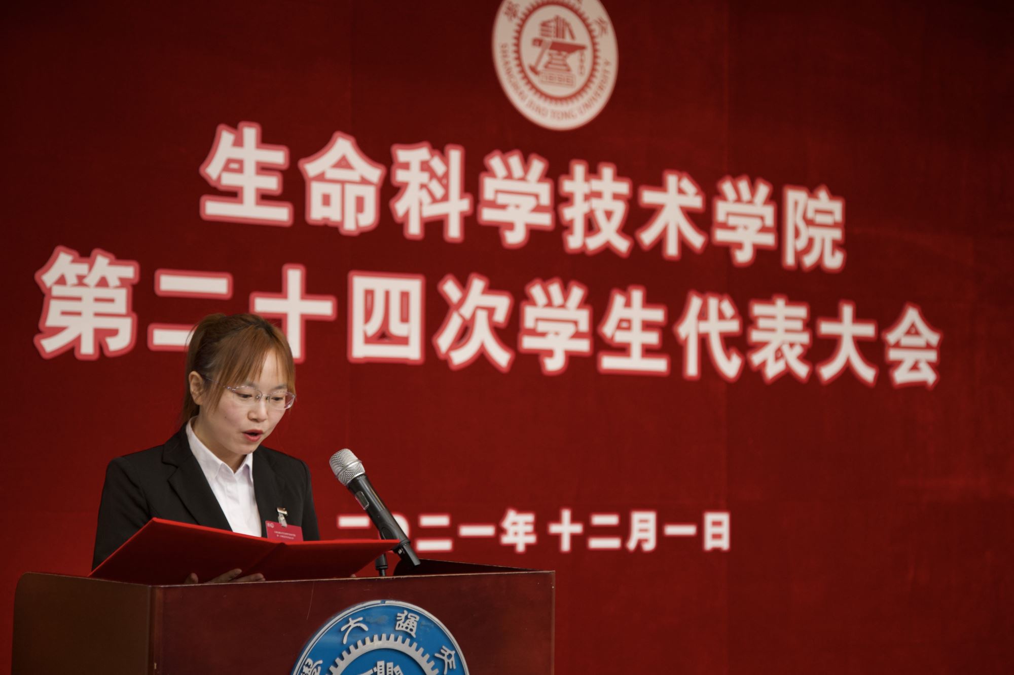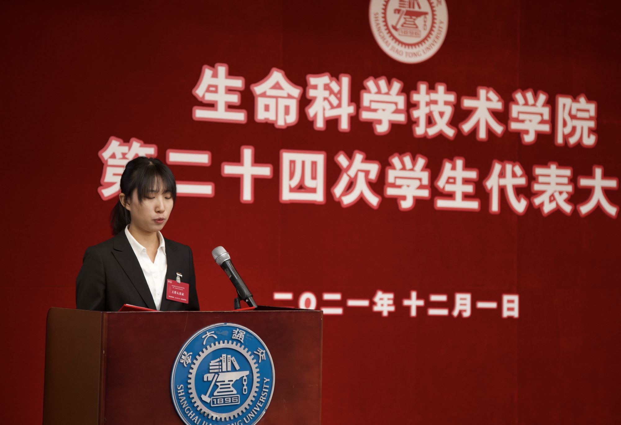 随后,大会进入常任代表选举环节。大会主席团成员、第十八届研究生会主席团成员吴巧玉宣读《上海交通大学生命科学技术学院第二十四次学生代表大会常任代表选举办法》。