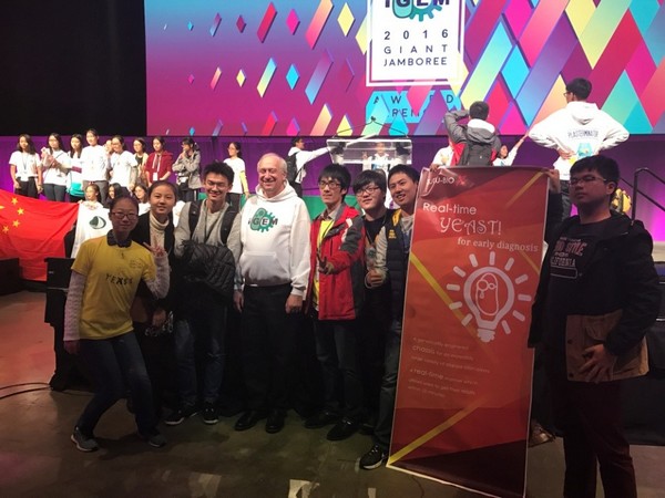 参赛项目为Vesatile Yeast Interface - for disease diagnosis(用于疾病诊断的多功能酵母接口),即通过合成生物学的方法构建用于检测生理样本中疾病标志物的酵母菌株。疾病,尤其是重大恶性疾病的早期诊断是医学基础和临床研究中面临的最难和最迫切的问题。本届团队针对糖尿病与嗜铬细胞瘤两种疾病的生物标志物构建了快速的家用酵母检测器,其能在30秒内根据生物标志物的浓度发出肉眼可见的冷光,并且解决了生物检测器的保存与运输的问题,为这两大疾病早期诊断提供了快速和经济实惠的解决方案,并为今后更多疾病的早期诊断提供了思路和细胞底盘。本次项目由队长赖伊杰通过自身经历与查阅文献独立提出,并联合其他队员一道对项目的所有实验部分进行了详细可行的设计,为了缩短检测时间,他决定避开转录机制,另辟蹊径地利用酵母内cAMP的变化构建生物传感器,并利用G蛋白偶联受体的模式化特点构建了可替换元件的检测信号系统,让同一种酵母底盘可以提供替换受体而检测不同的疾病标志物,同时创新性地提出利用冻干的方法来制作酵母生物检测器,便于运输储存,利于成果转化。队员们还基于冻干酵母活化过程中活性的变化与cAMP和发光强度的关系建立了数学模型,并成功拟合了实验数据,为未来产品的应用提供了模型指导;另外,团队还扩展了项目的外延,从法律、安全、伦理的角度论证了项目的合理性,在做科研的同时,队员们还注重社会效益,调研了项目的公众接受度,向大众普及了合成生物学。本项目从载体构建、酵母工程菌功能验证、社会实践、数学建模、宣传设计与网站建设等多方面开展联合攻关,每个阶段均成功实现,最终在iGEM决赛中完美收官。