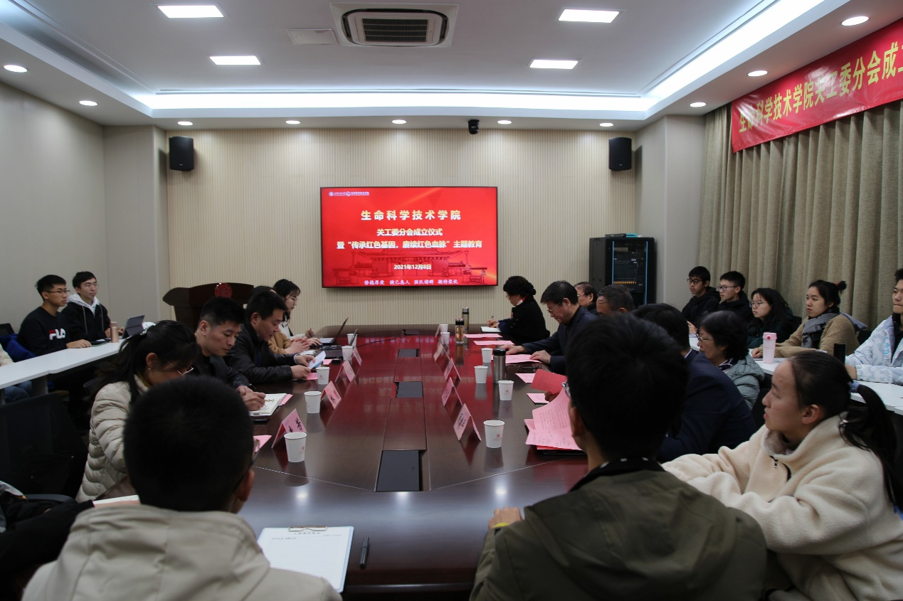 12月8日下午,生命科学技术学院关工委分会成立仪式暨“传承红色基因,赓续红色血脉”主题教育活动在生物药学楼2号楼116会议室举行。上海交通大学关工委常务副主任胡近、生命科学技术学院关工委分会成员罗九甫、陆秀英、姜宗来、王莲芸受邀出席,学院党委书记顾建平、副书记李文纯、学生办思政教师、辅导员及2021级新生入党申请人参加活动。活动由李文纯主持。