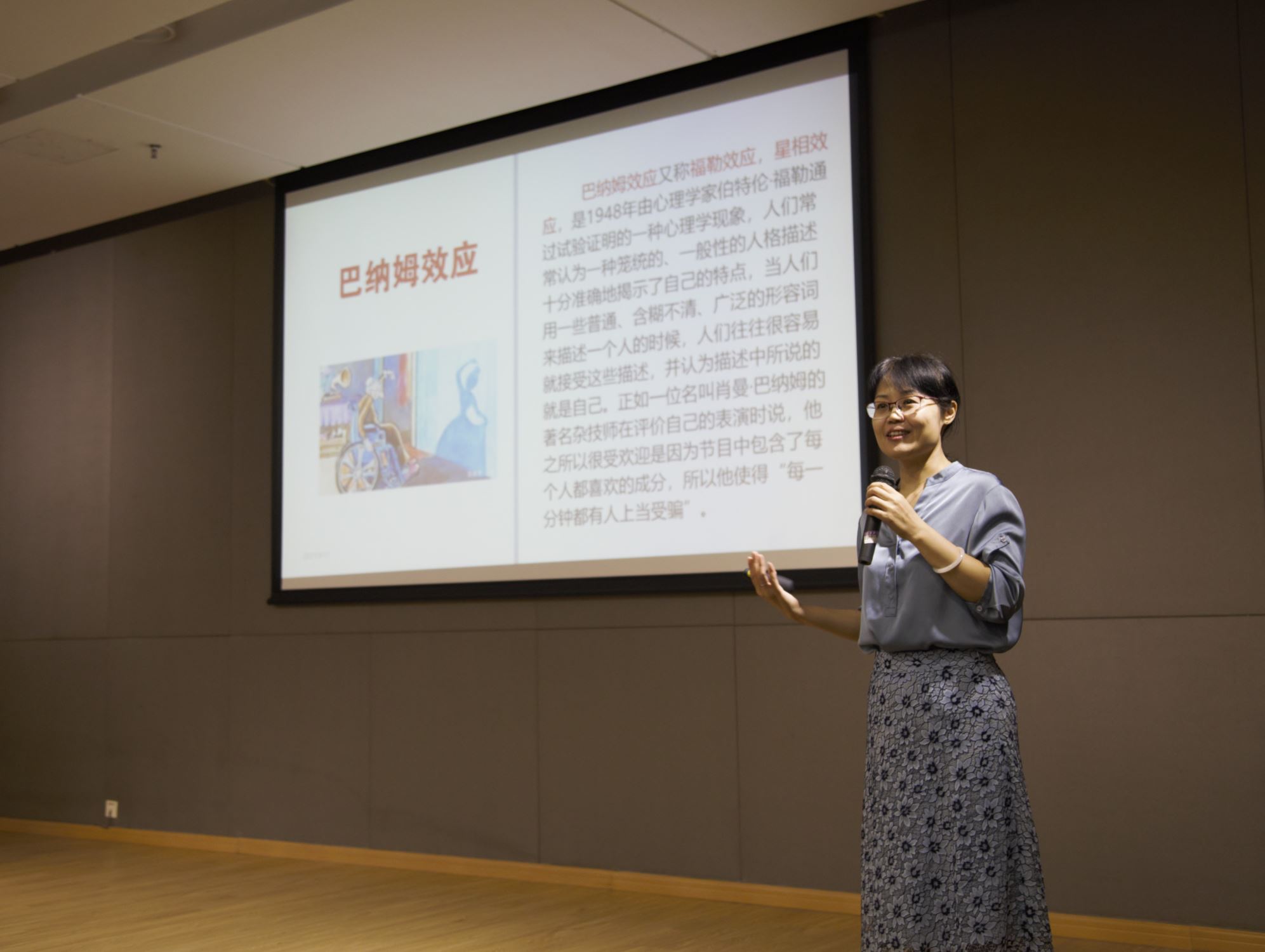 校心理咨询中心副主任张洪英为新生作心理健康教育讲座。她提醒新生,了解自己的心理健康状态是解决心理问题的基础,进入新环境除了要学会自我调节心理状态,在必要的情况下还要向心理老师求助。她指出,在对待心理健康问题上,上海交通大学的学生心态表现得更加开放,不羞于启齿,积极配合治疗,这是一个良好的现象。