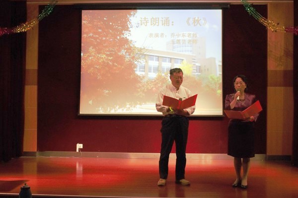 晚会以硕士二班的舞蹈开场,热情洋溢、动感十足的舞蹈引得台下掌声一片。乔中东和王莲芸为本次晚会特地创作了诗歌《秋》,声情并茂、激情饱满的朗诵让大家领略到了诗歌的魅力。