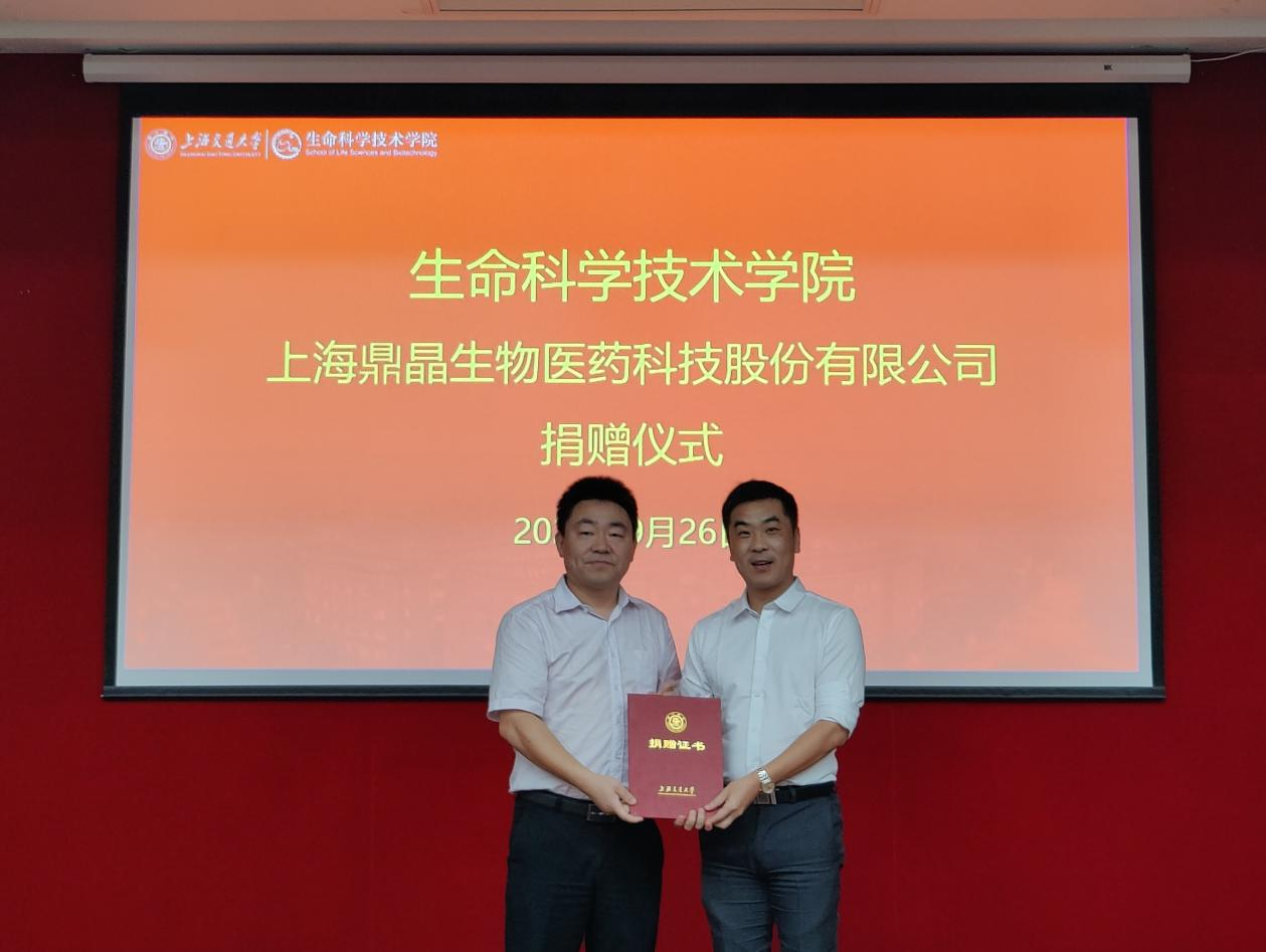 为支持生命科学技术学院教育事业发展,上海鼎晶生物医药科技股份有限公司捐资10万元,用于设立“鼎晶生物强基计划奖励基金”,奖励品学兼优的强基计划班大三学生,为学院人才培养事业发展提供有力支持。