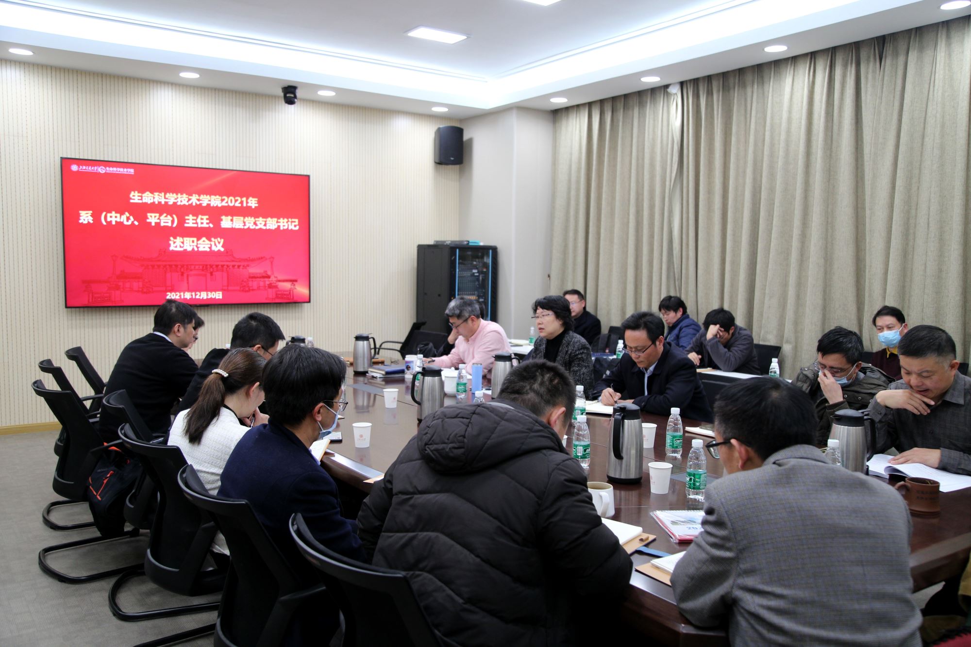 12月30日,生命科学技术学院组织召开了2021年度系(中心、平台)主任、基层党组织书记述职会议。学院党政领导班子,各系、中心、平台主任与党支部书记出席会议。会议由党委书记顾建平主持。