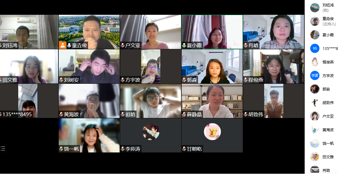 三小时的分享会中,同学们提到最多的是理解和感激,理解学院学校的困难,感激在这困难时刻学院学校给予的各方面保障,并乐观表示自己一定尽力配合,早日取得这场防疫攻坚战的胜利。最后,在师生互道珍重,早日相聚思源湖畔的祝福声中本次活动圆满结束。